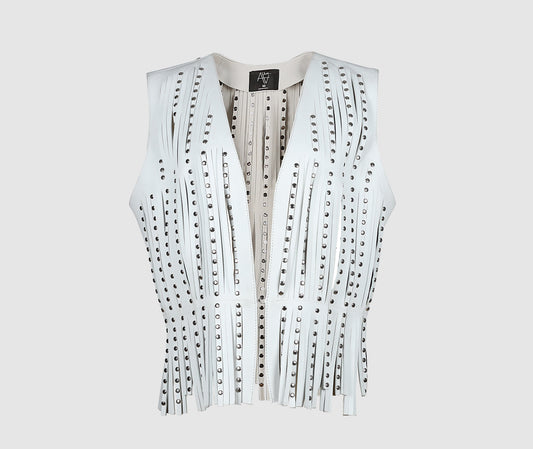Studded Ayla Leather Vest White