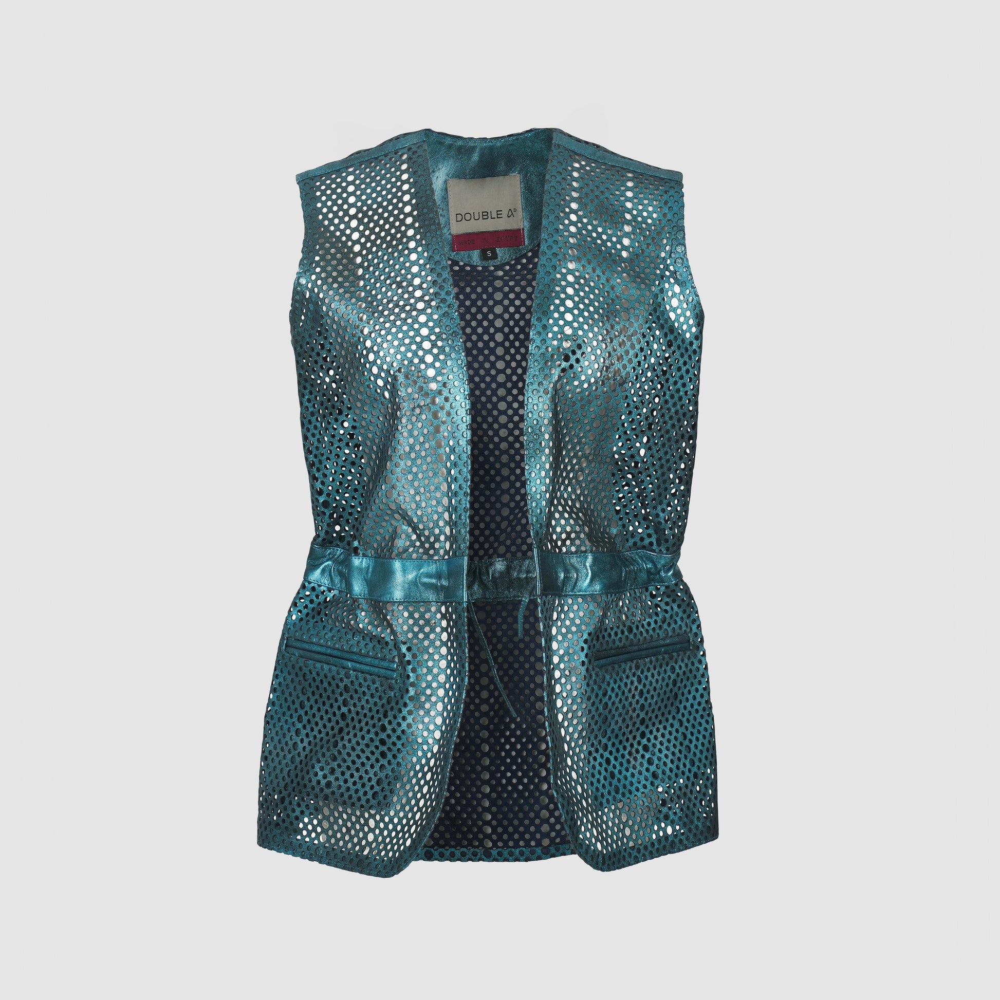 - Sleeveless leather laser-cut vest