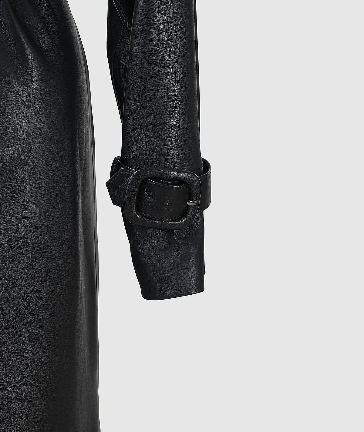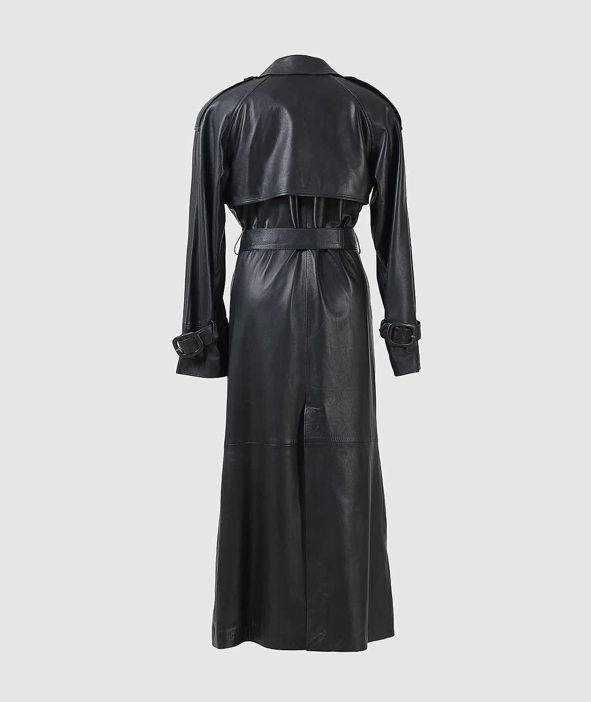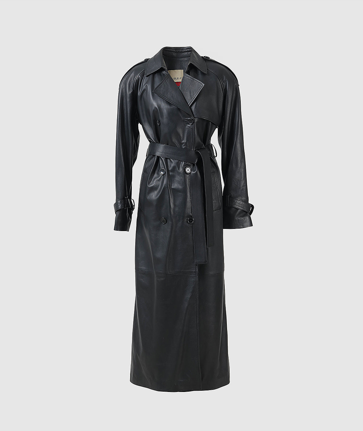 Command attention with our striking leather coat, featuring bold shoulders and a cinched waist belt for a powerful, tailored silhouette. This statement piece is crafted from luxurious leather, combining structure and elegance in one. The bold shoulders add a touch of drama, while the adjustable waist belt ensures a flattering, fitted look. Perfect for elevating any outfit, this coat is the ultimate blend of modern sophistication and timeless style.