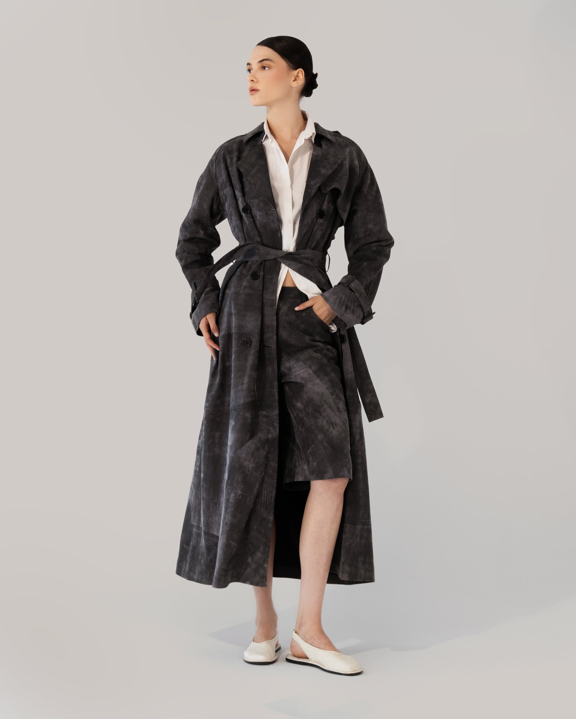 Command attention with our striking leather coat, featuring bold shoulders and a cinched waist belt for a powerful, tailored silhouette. This statement piece is crafted from luxurious leather, combining structure and elegance in one. The bold shoulders add a touch of drama, while the adjustable waist belt ensures a flattering, fitted look. Perfect for elevating any outfit, this coat is the ultimate blend of modern sophistication and timeless style.