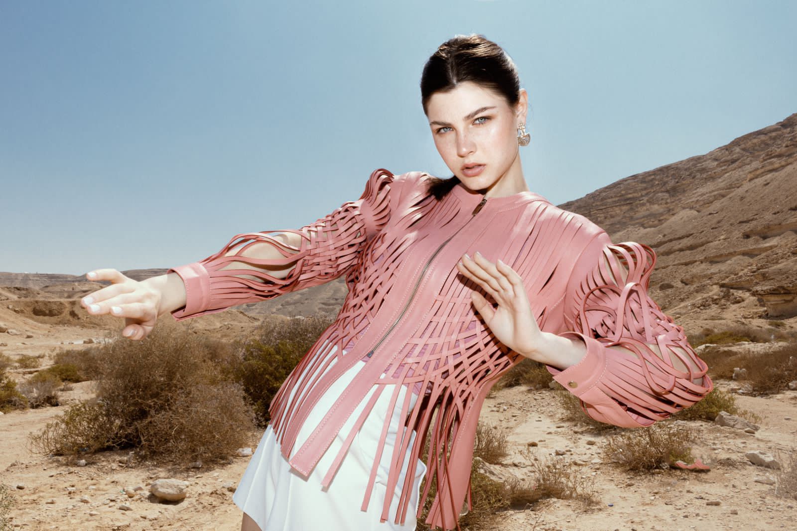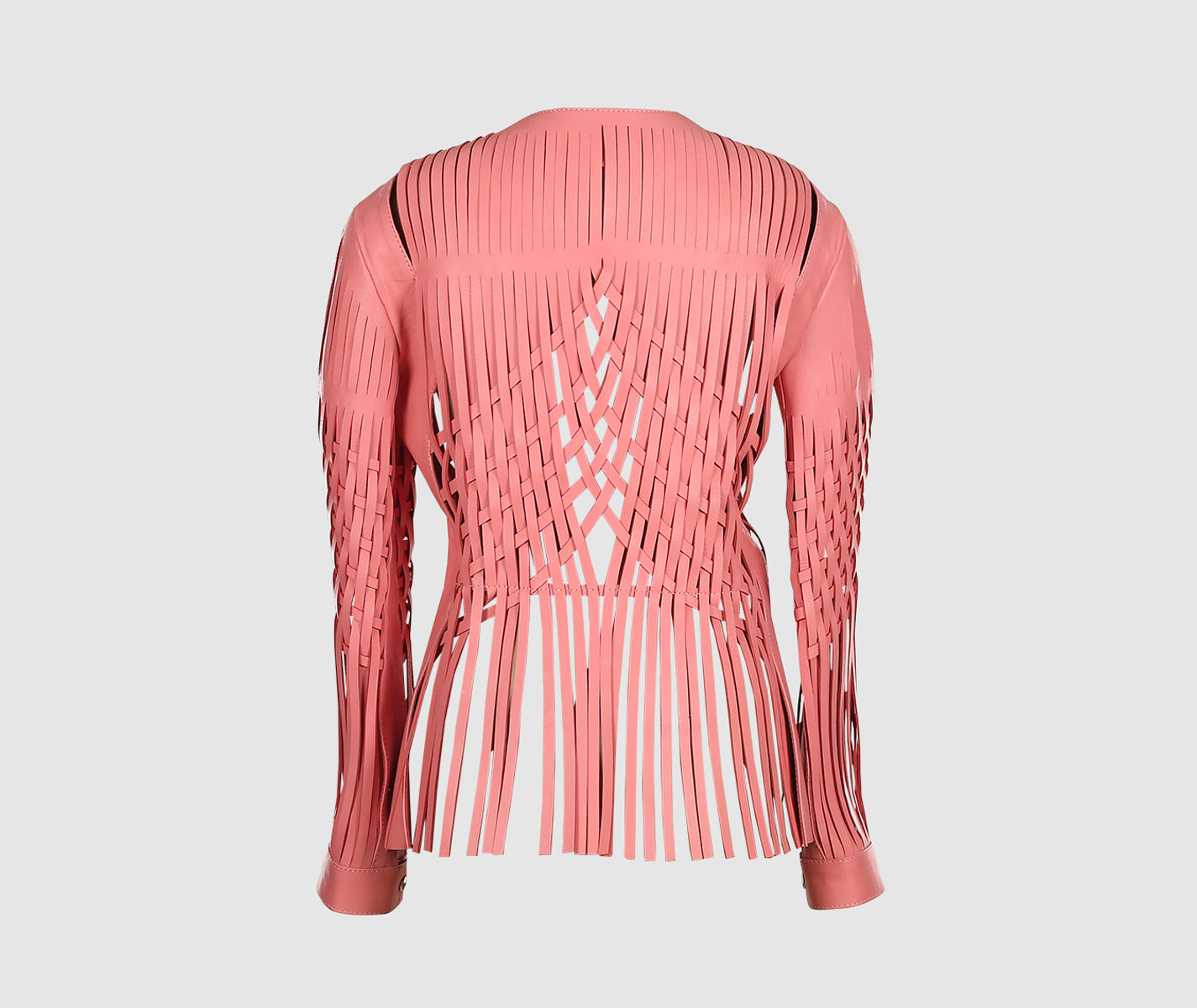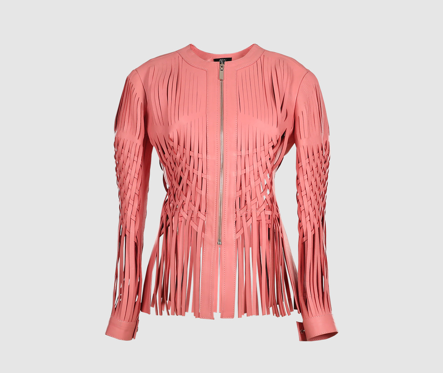 The Attalea leather Jacket is one of Double A’s signature designs, it is a straight fit woven fringed Jacket with a round neckline and a metal zip fastening at the front. It can be dressed up or down, casually or formally, in winter or summer. It is truly the piece that you will rely on to popup your outfit.