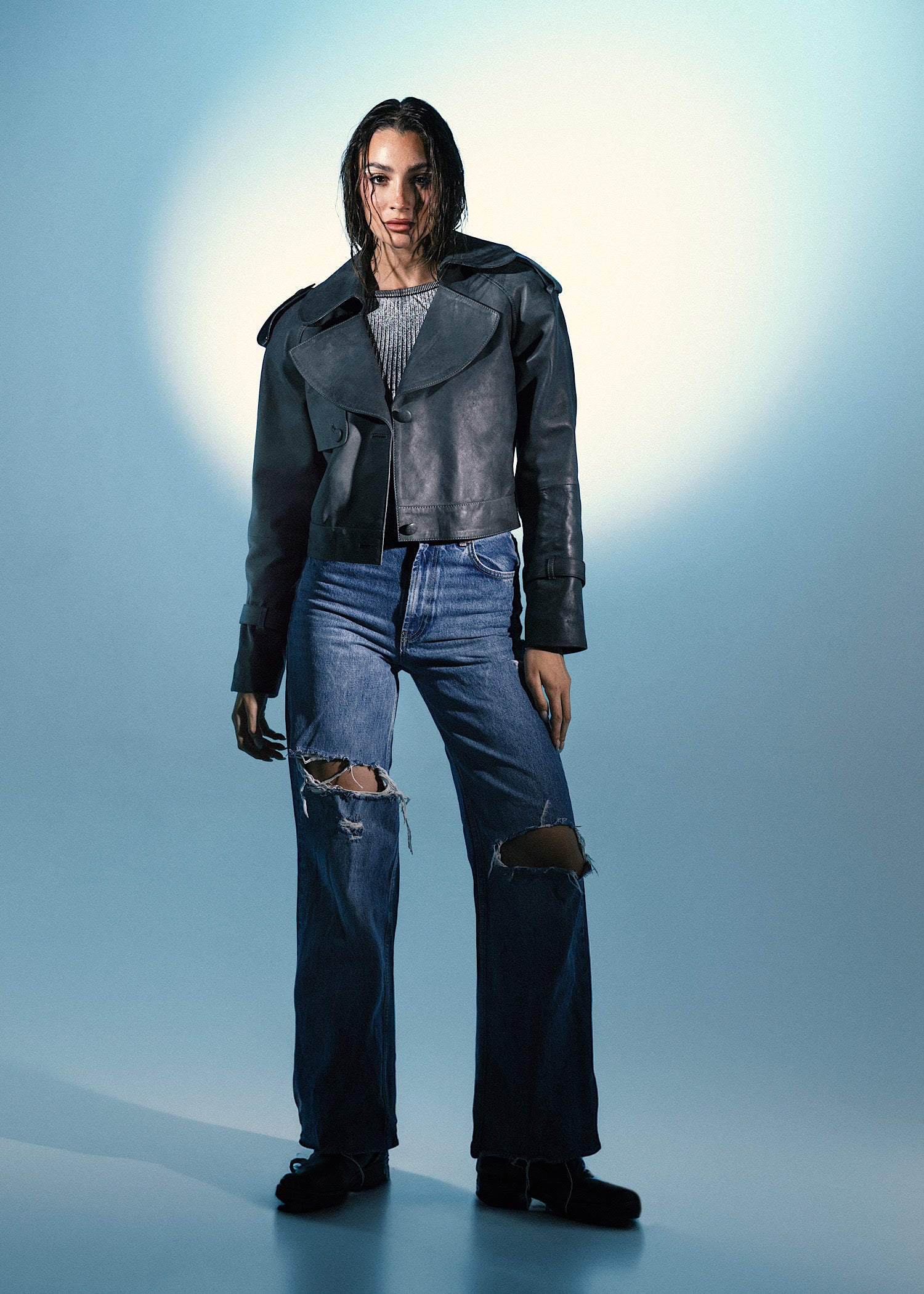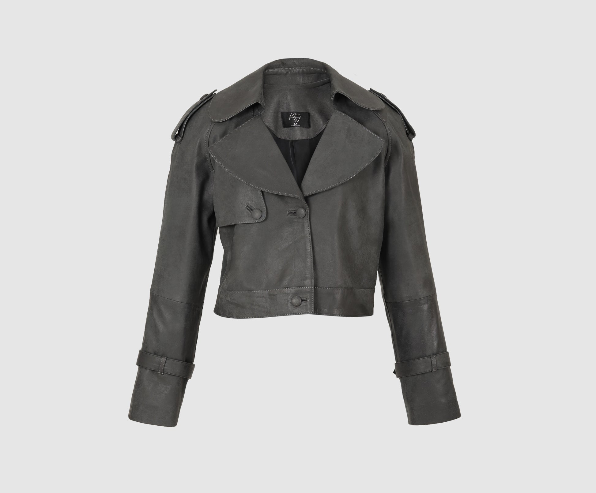 The Audax jacket is an oversized cropped leather jacket made from buttery soft leather with shoulder pads for an extra bold and cool look. Featuring front fastening with matching covered buttons.Β