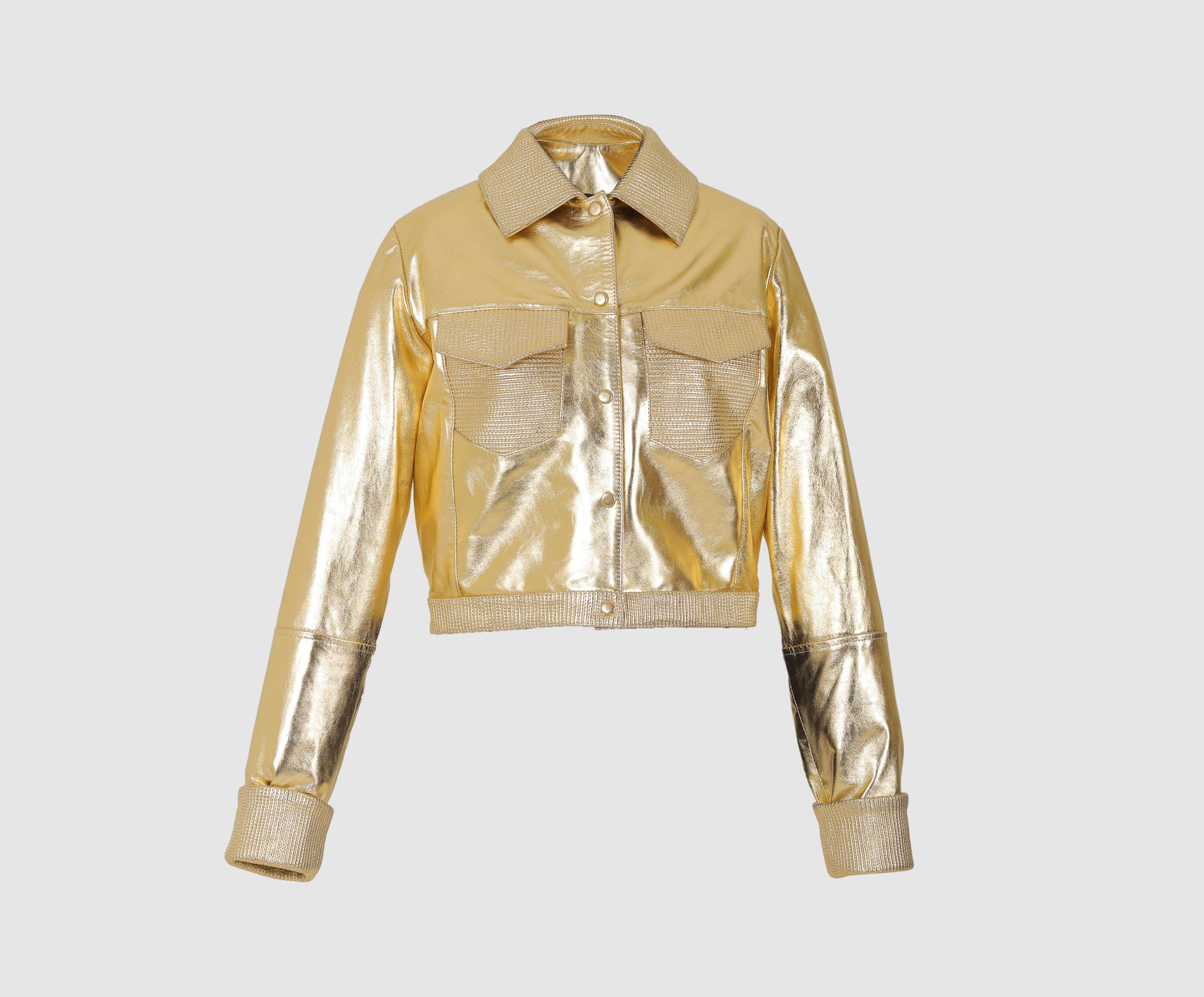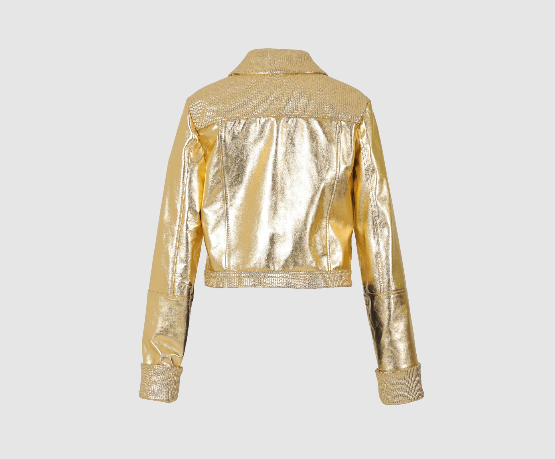 Inspired by the Ausborn jacket details and Zinnia Jacket cut, the Auzinnia jacket was born. It features details on the collar, pockets, cuffs, hem, and back. These details gives the Auzinnia jacket a rich look with its metallic leather color. It featuresΒ front patched pockets with flaps, and front fastening with matching covered buttons.