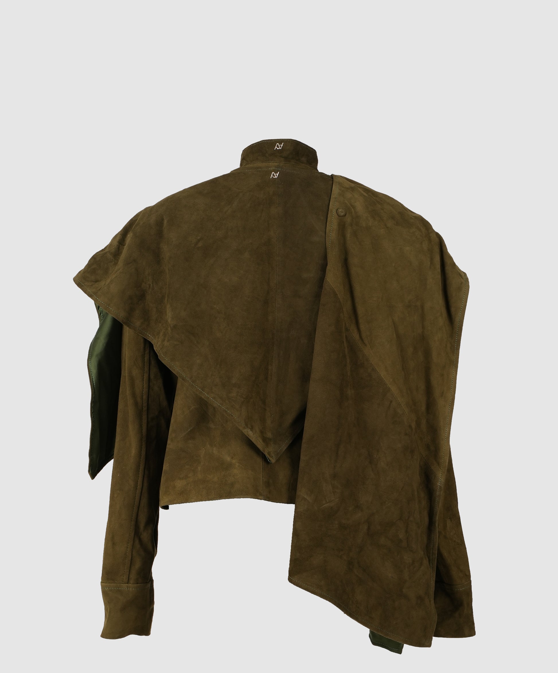 This sleek leather jacket features a detachable cape that effortlessly switches up your look. Wear it with the jacket for an instant style upgrade, or remove the cape to enjoy a clean, minimalist silhouette. The cape itself doubles as a standalone accessory, allowing you to create layered, sophisticated looks that feel fresh every time.