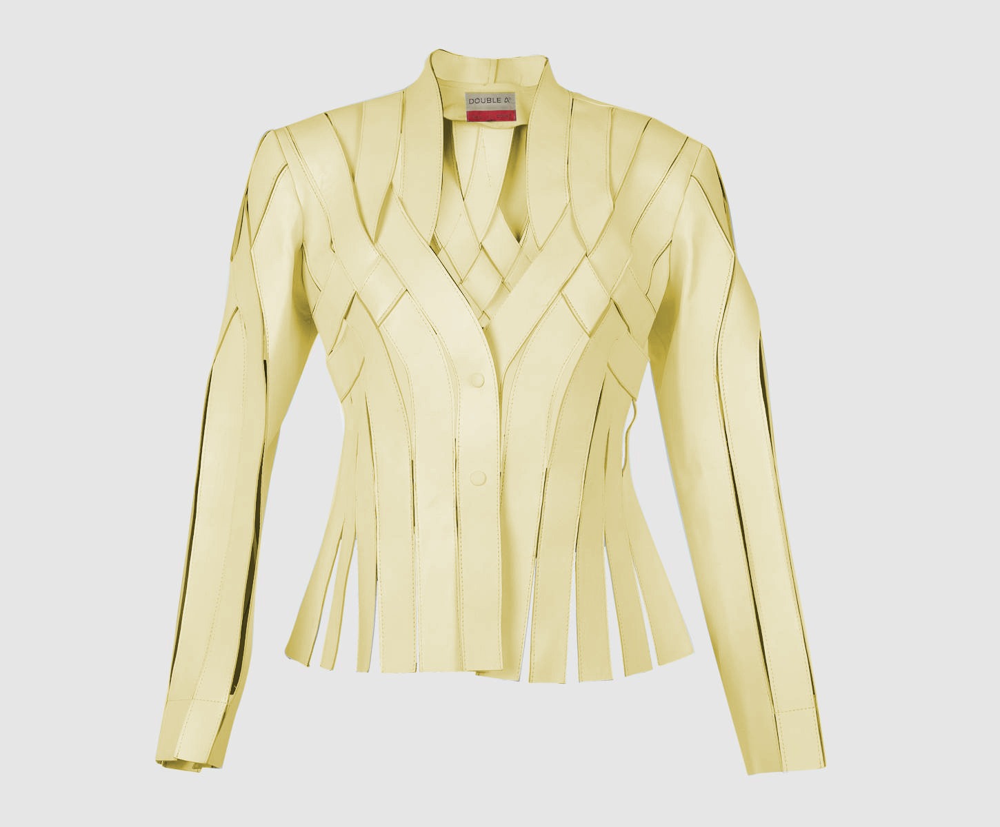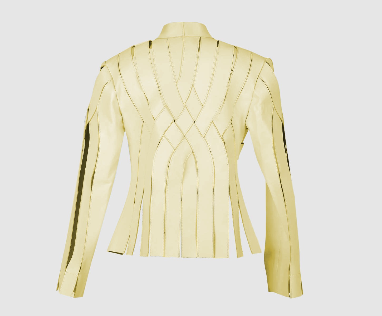 - Leather Jacketย featuring ย interlaced leather strapsย