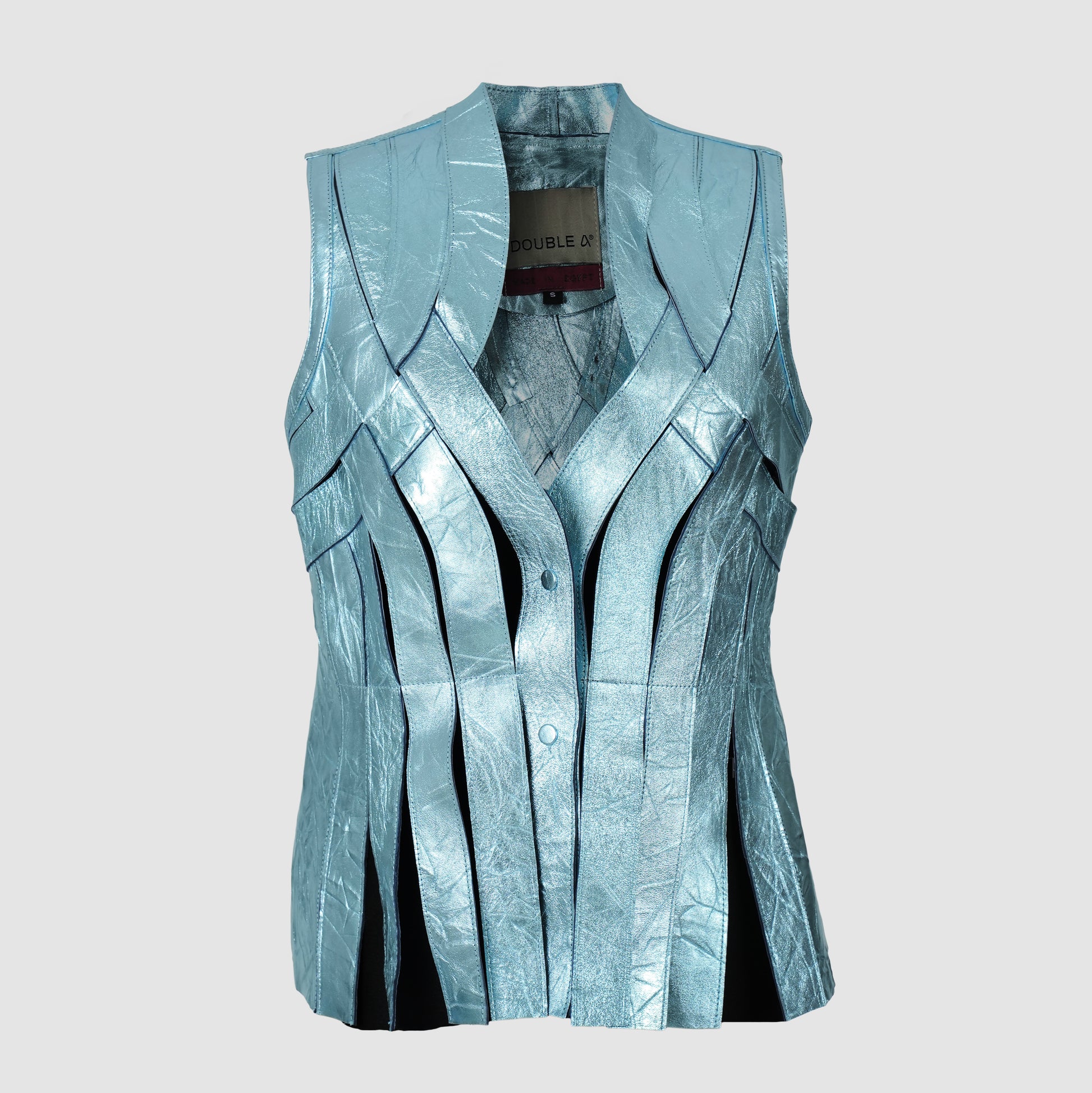 The Brianna vest is handcrafted from the finest leather, this vest exudes rugged elegance. The interlaced design adds a touch of artisanal craftsmanship, creating a visually striking pattern that commands attention.Β