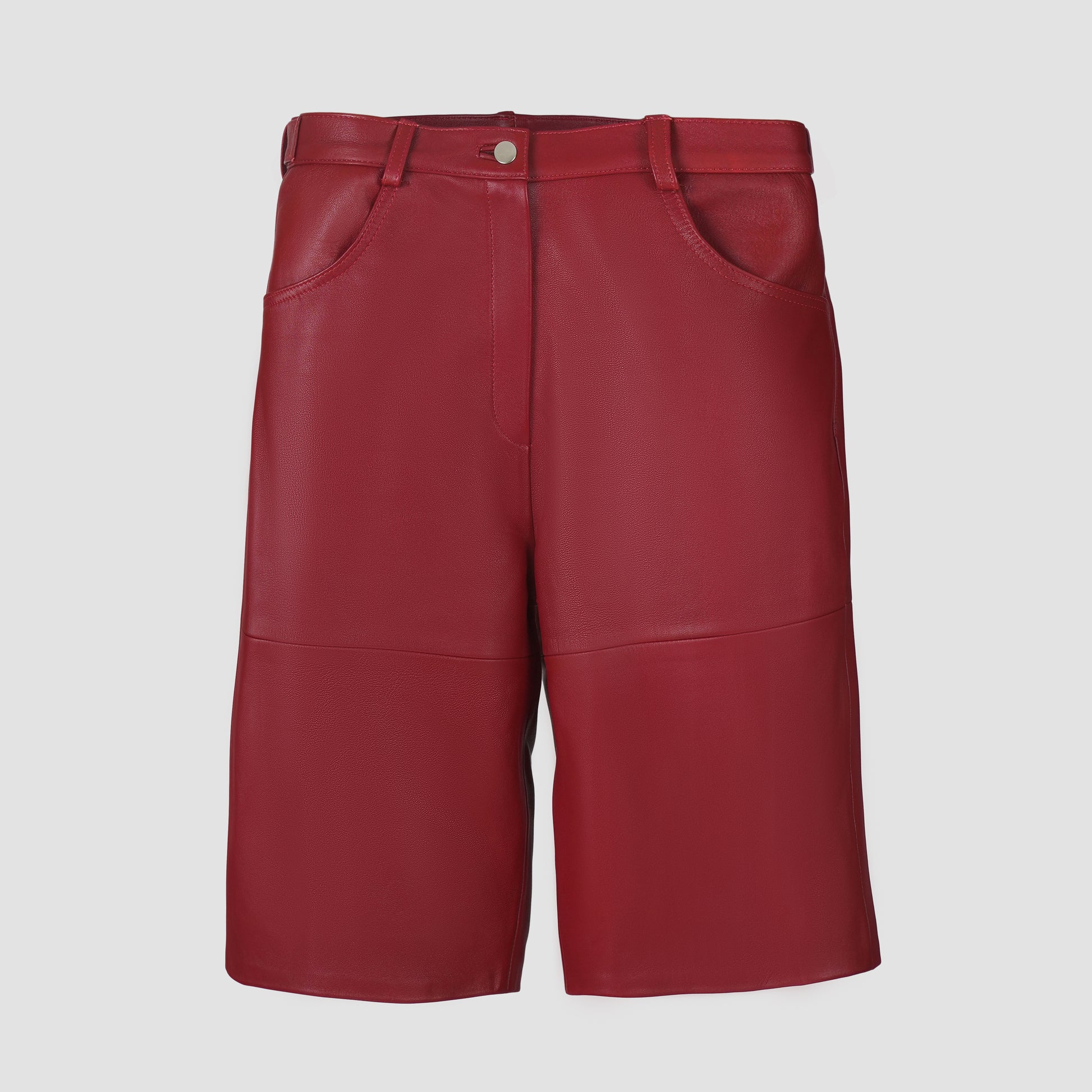 Step into effortless style with our leather Bermuda shorts, featuring an oversized fit for a relaxed, modern look. Designed with functional front and back pockets, these shorts offer both practicality and chic appeal. Crafted from premium leather, they provide a soft, luxurious feel while maintaining a structured silhouette. Perfect for elevating casual outfits, these Bermuda shorts blend comfort and bold style for any occasion.