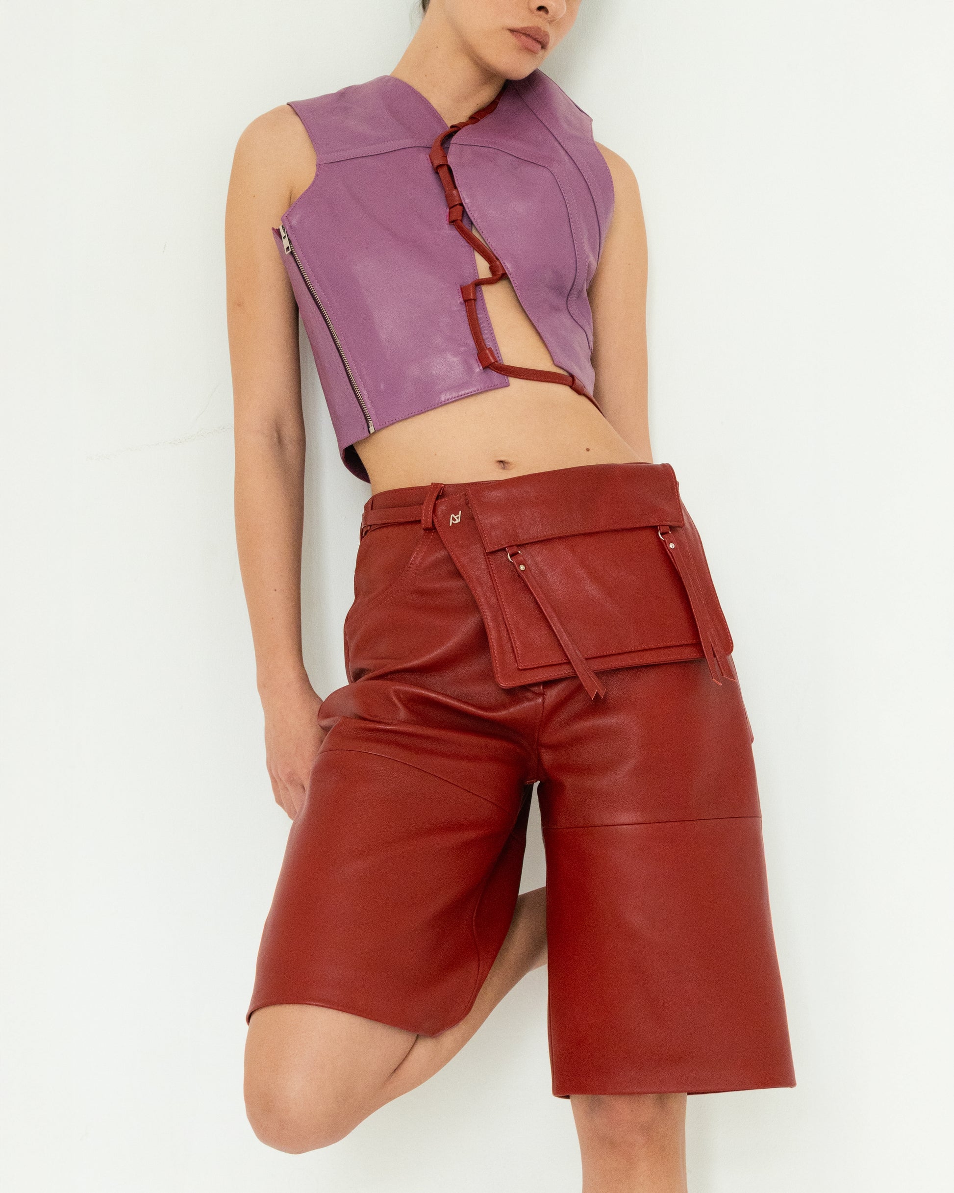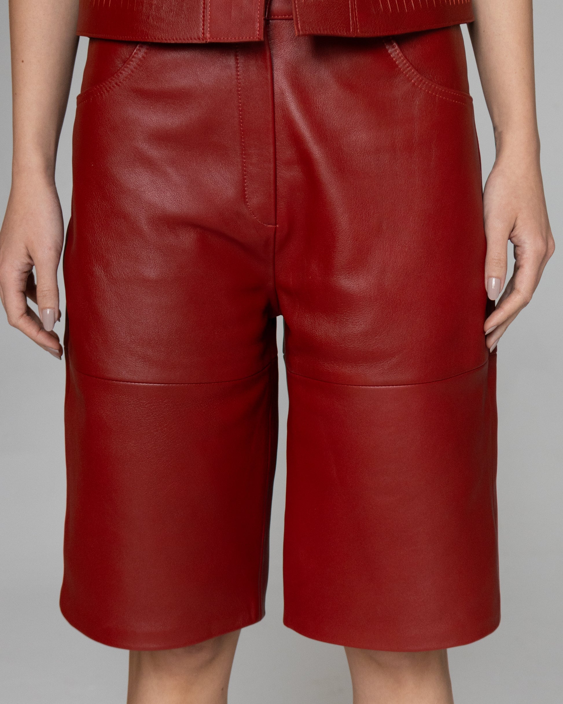 Callie Leather Bermuda Shorts Red