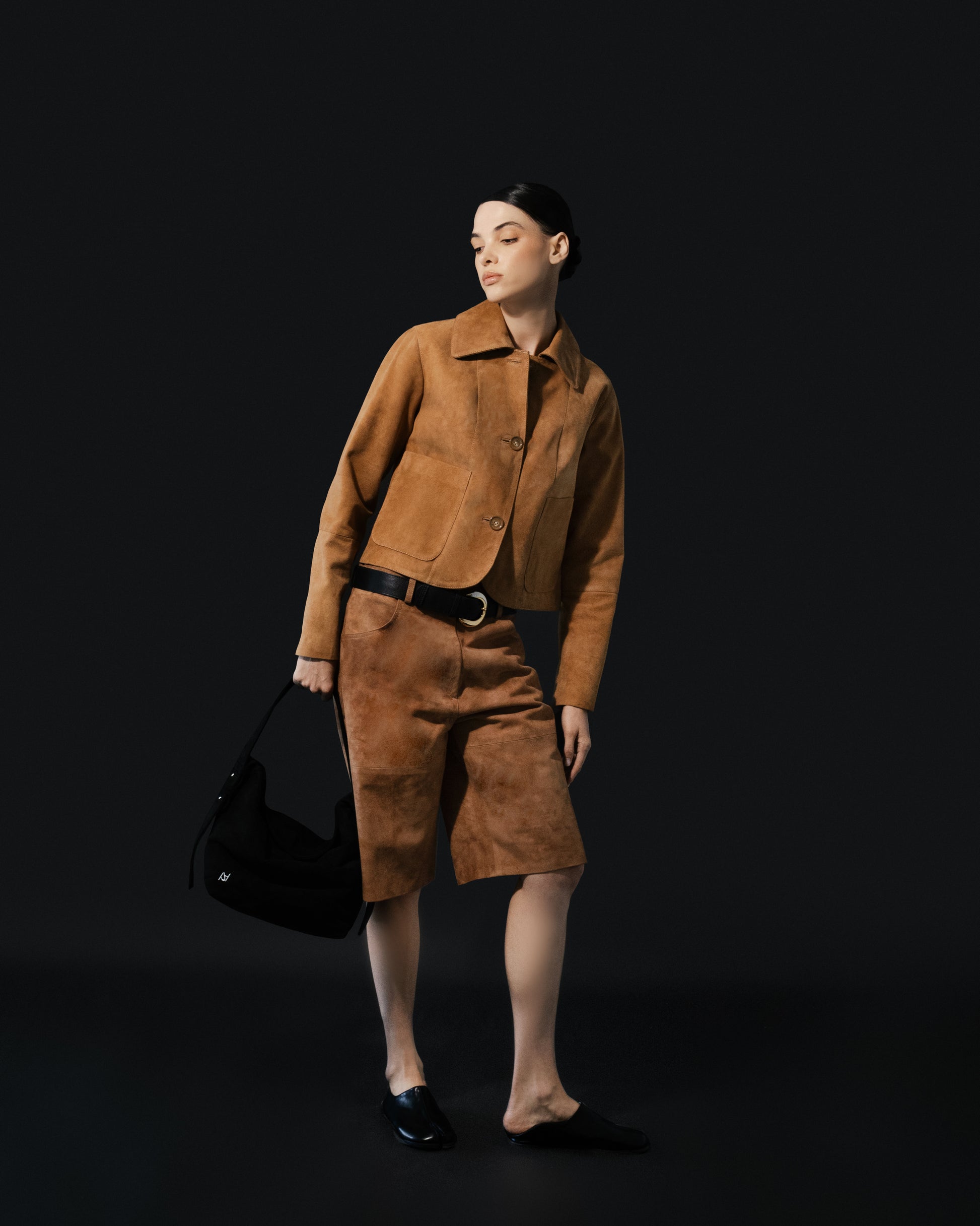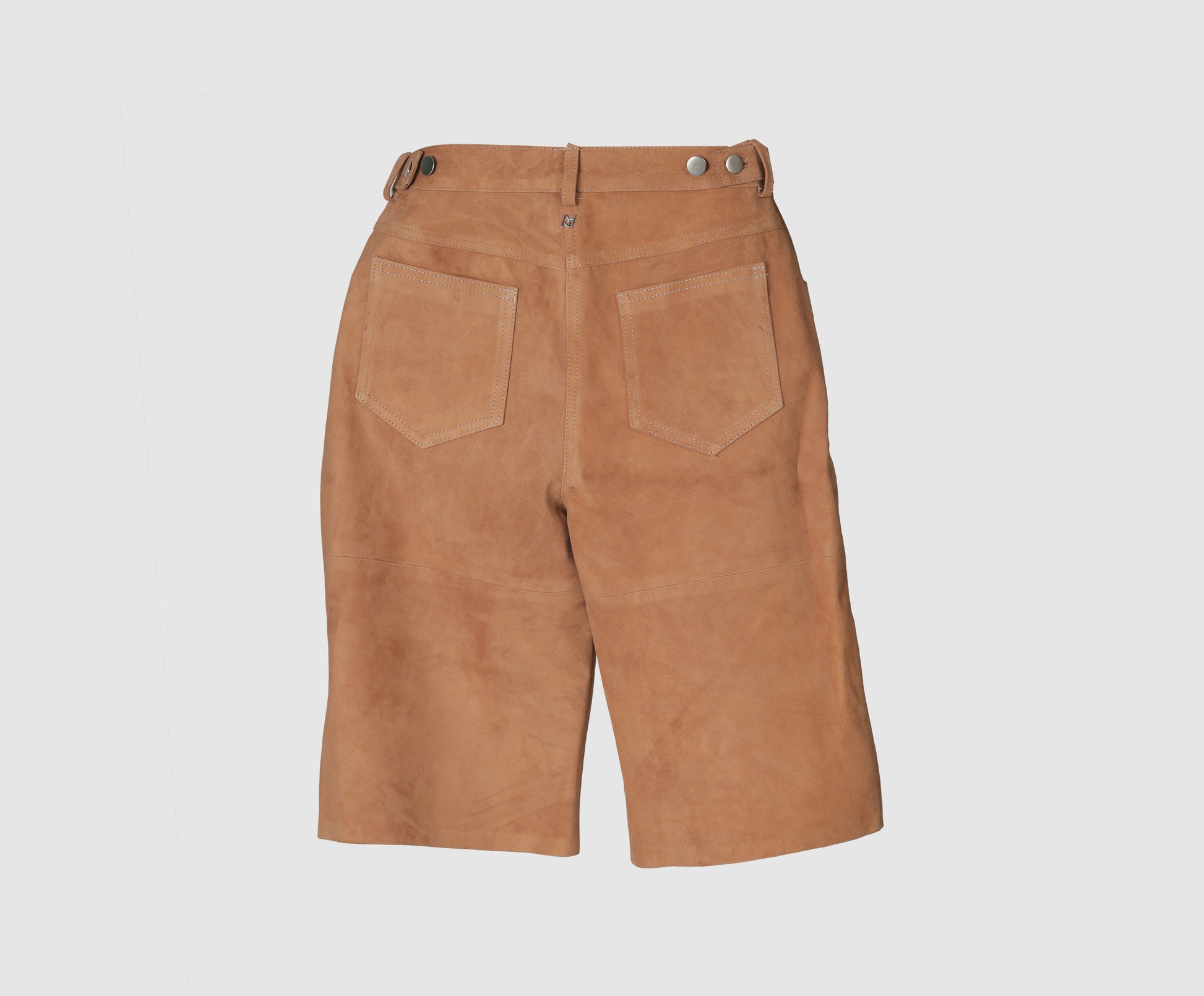 Step into effortless style with our leather Bermuda shorts, featuring an oversized fit for a relaxed, modern look. Designed with functional front and back pockets, these shorts offer both practicality and chic appeal. Crafted from premium leather, they provide a soft, luxurious feel while maintaining a structured silhouette. Perfect for elevating casual outfits, these Bermuda shorts blend comfort and bold style for any occasion.