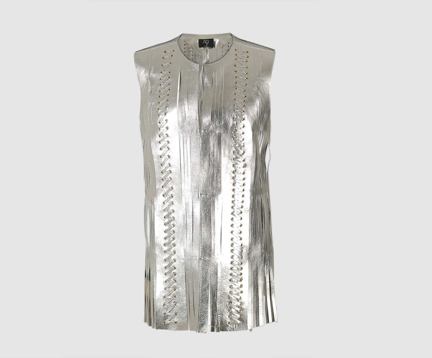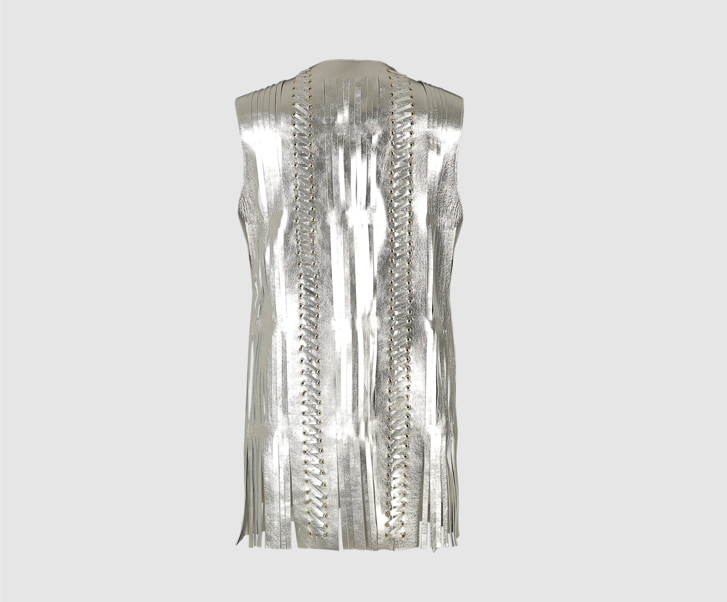 The Caniayla leather vest is named from the βCanisβ Jacket and the βAylaβ vest, since it is inspired by both. The Caniayla vest is a mix between the unique details in the CANIS and the fringes in the AYLA. The Caniayla vest is a straight fit, fringed leather vest, featuring three metal hooks fastening at the front.