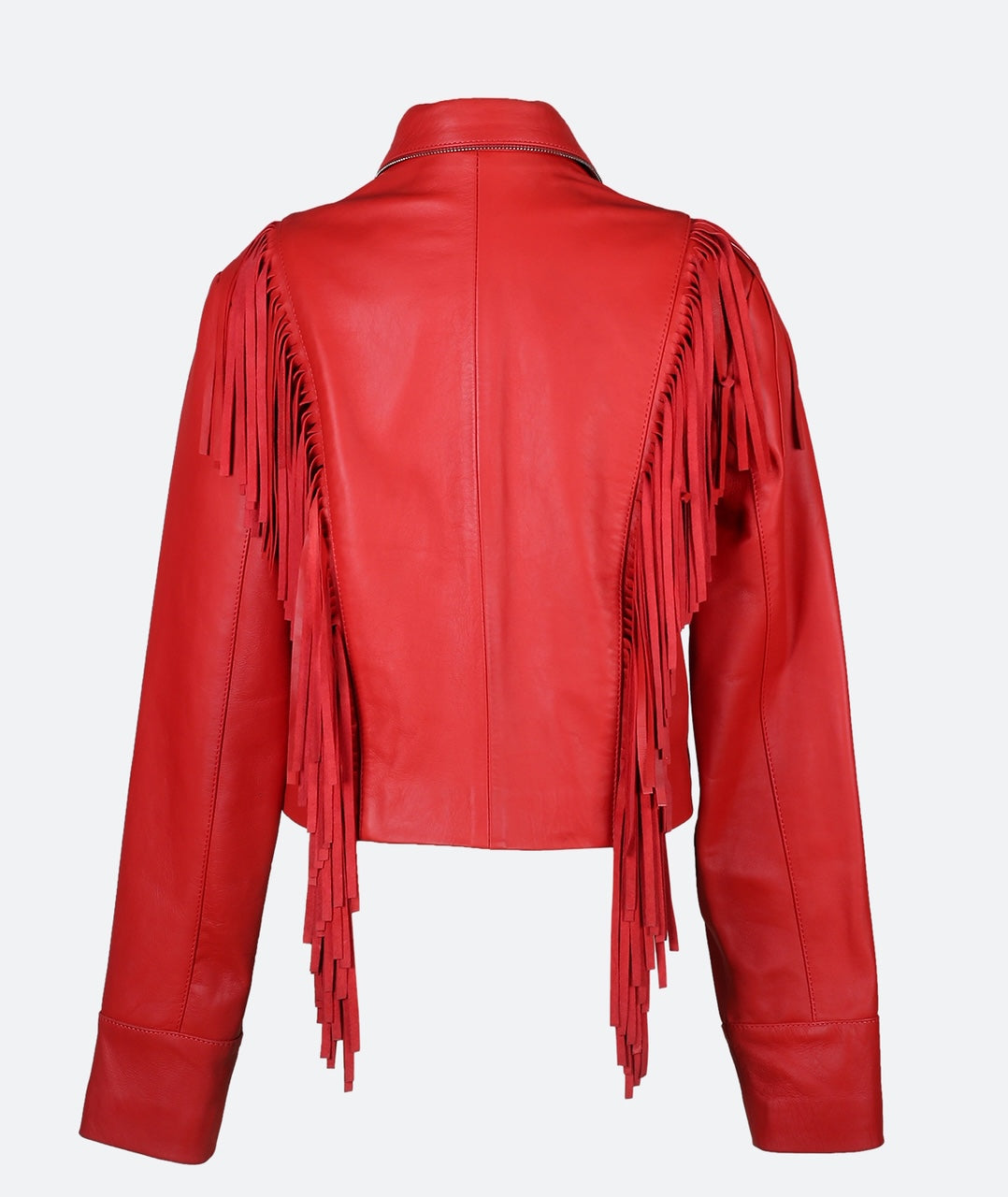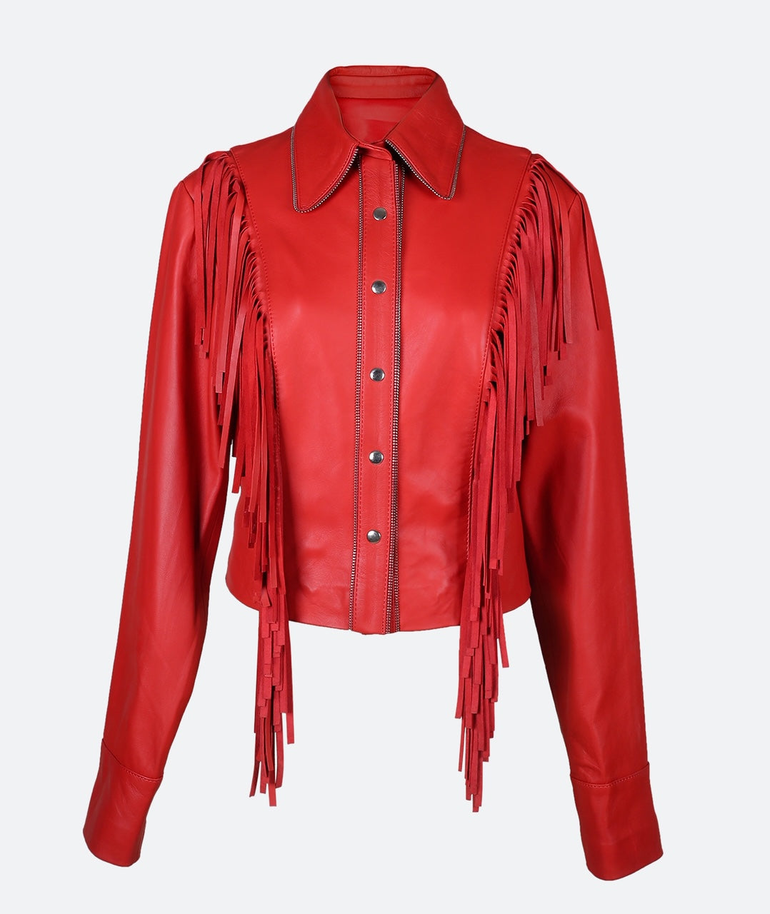 Who doesnβt love a fringy look? The cascade leather jacket is one of our best sellers, it has snap-buttons fastening at the front, featuring side fringes on the back and front. The cascade jacket is unique in its Craftsmanship since each fringe is shredded by the hands of our special artisans. Check Double A world for more details on how our pieces come to life.