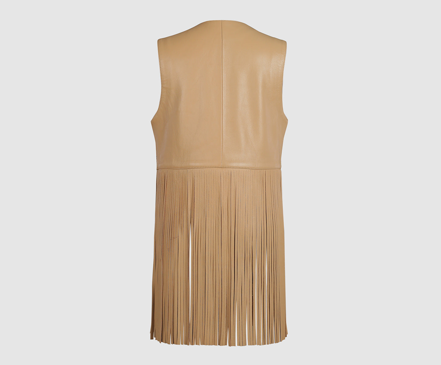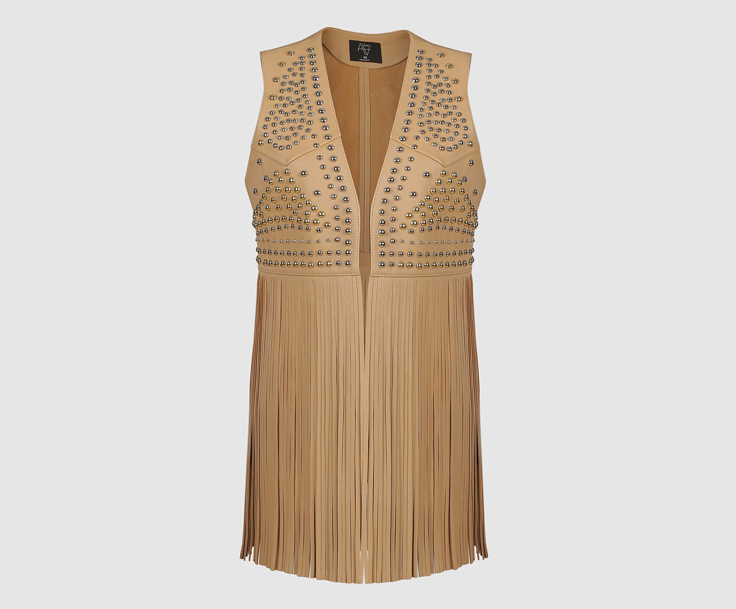 Meet one of Double Aβs signatures, the clair de lune vest, with its mix of silver and light gold studs it will make the spotlights on. It is a straight fit leather vest featuring fringes all around the hem. The clair de lune is a Double Aβs must have!