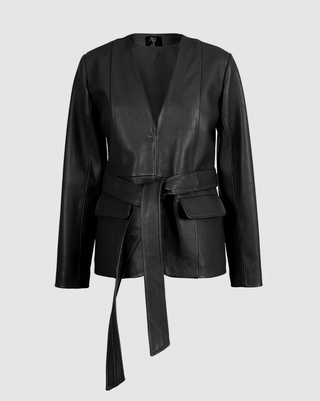 The Cordelia leather blazer features a great flattering fit that will add extra glamour to any outfit. It features 3 metal hooks at the front and a matching long leather belt that will allow you to style it differently every time. Style it in different occasions and it will complement any look.