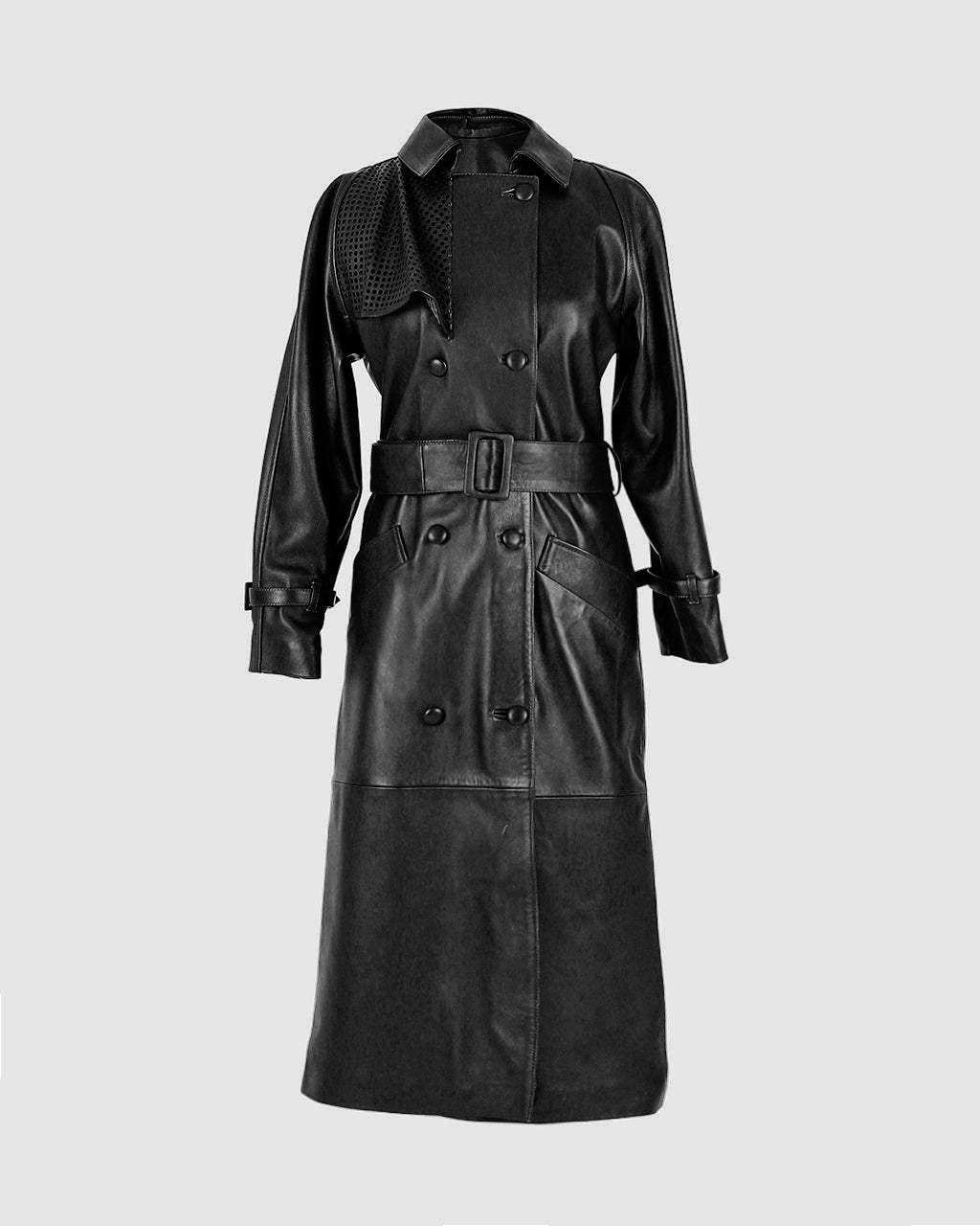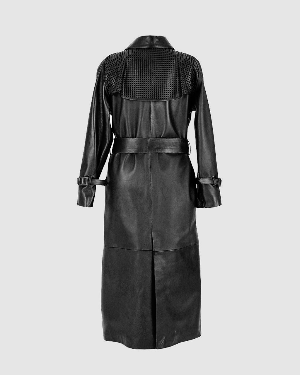 The ebony coat will elevate any classic look, made from soft and luxurious leather. It features Β laser cut details on the chest and back for extra uniqueness.