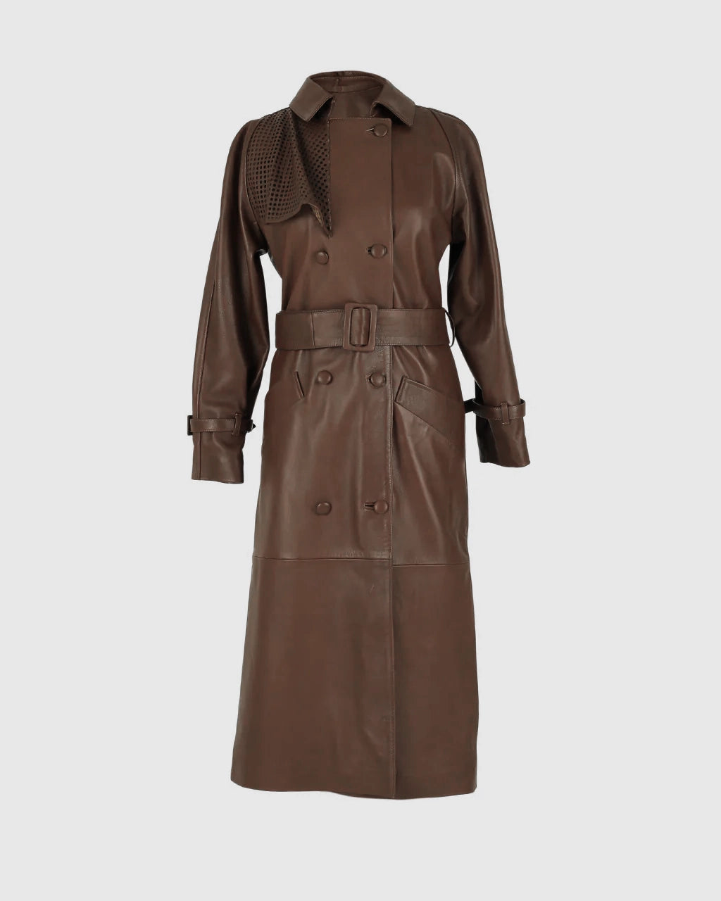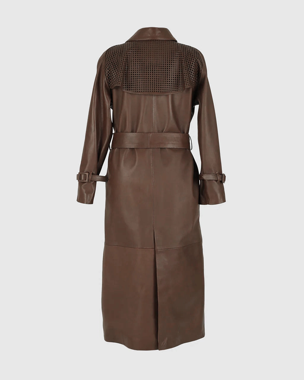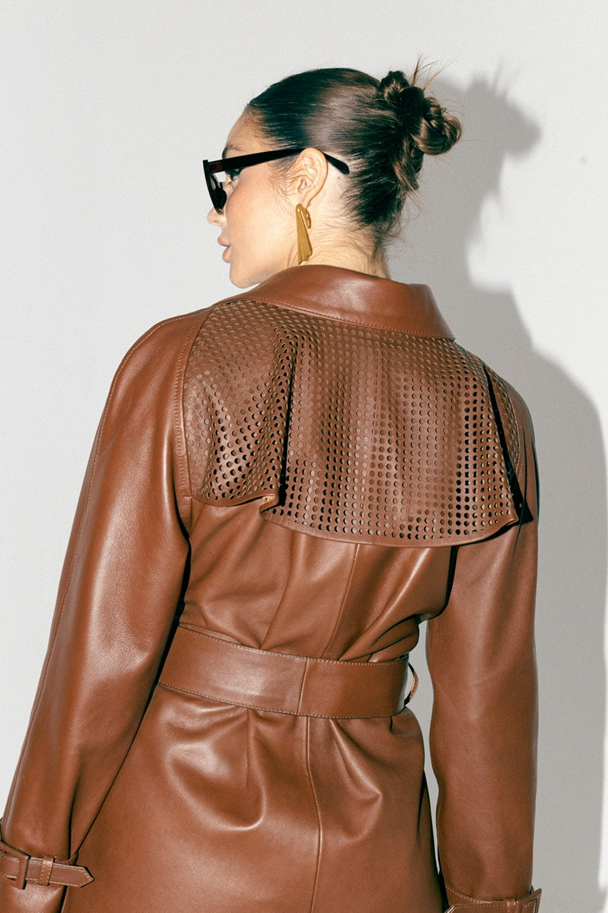 The ebony coat will elevate any classic look, made from soft and luxurious leather. It features Β laser cut details on the chest and back for extra uniqueness.