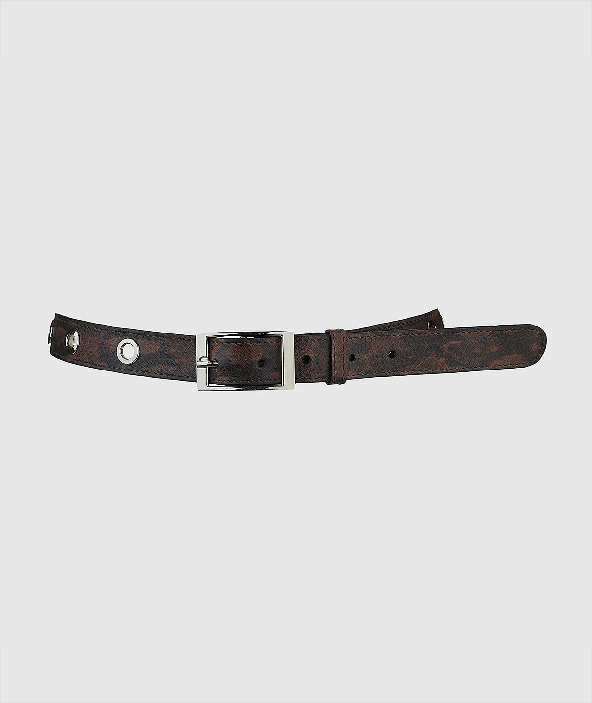 Add an edge to your look with our leather belt, featuring a striking rectangular silver buckle and matching silver eyelets. Crafted from high-quality leather, this belt combines durability with modern style. The sleek buckle and bold eyelets provide a statement-making finish, offering a touch of industrial-chic flair. Perfect for adding a contemporary accent to both casual and dressed-up outfits, this belt is a versatile and stylish accessory.