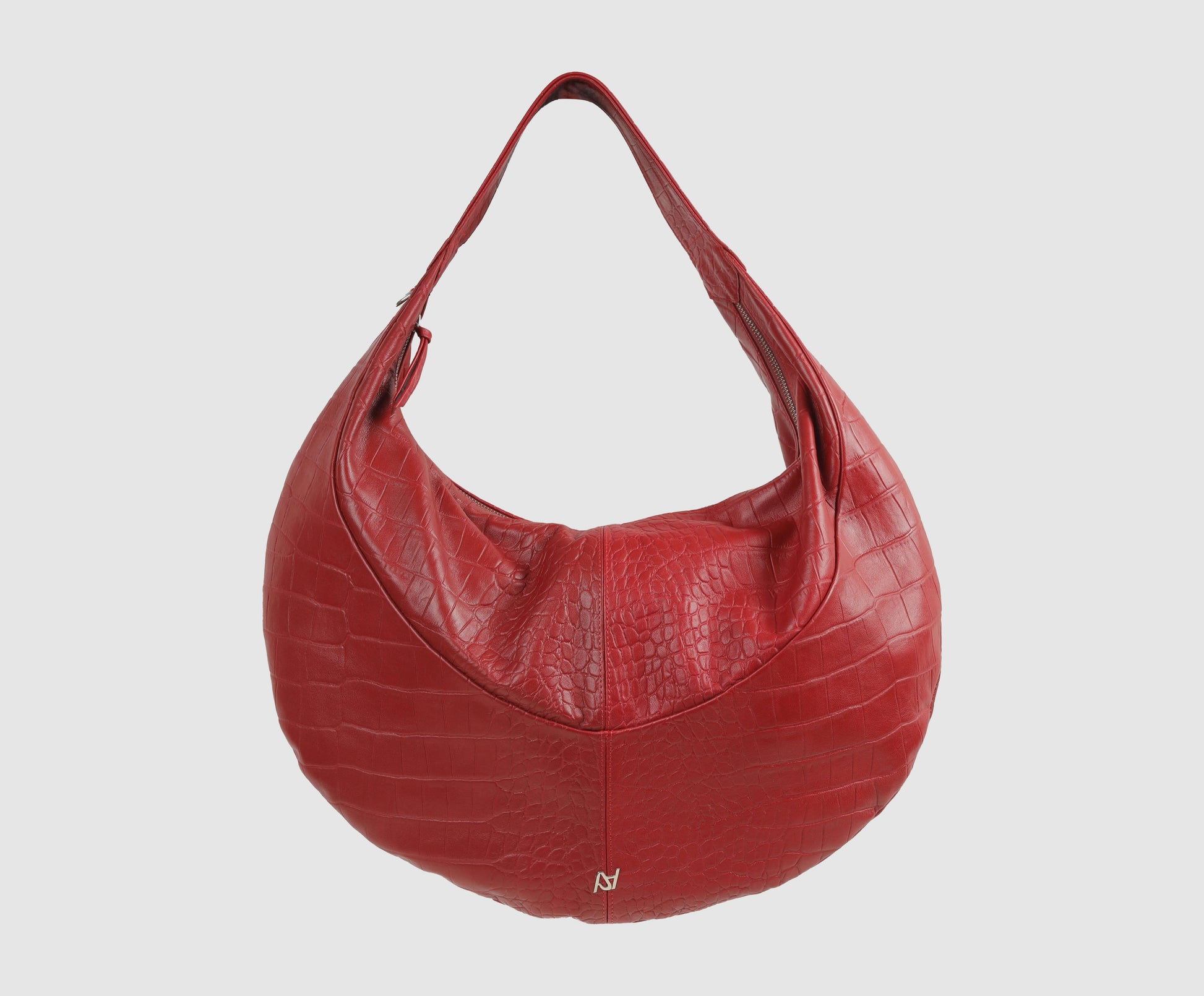 Make a bold statement with our oversized circular leather bag, crafted from luxurious croc-embossed leather. The unique round shape and zip closure offer a modern twist on a classic silhouette, combining style with functionality. Spacious enough to hold all your essentials, this bag is both practical and eye-catching. Perfect for those who love standout accessories, the croc texture adds a touch of sophistication to this must-have piece.
