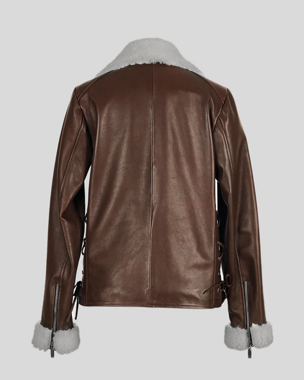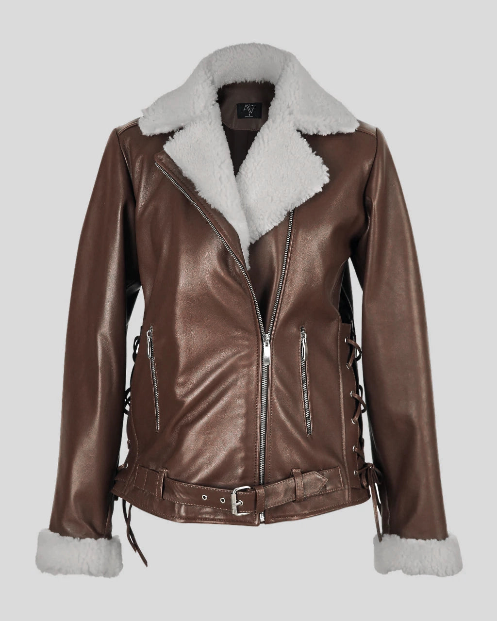 The GaiaΒ shearling leather jacket is a must have piece for ever day dressings. It is finished in a luxurious soft leather and shearling. The Gaia shearling jacket will definitely back you up in the cold/windy days. It features front pockets with a metal zip, Leather belt with a buckle and metal zip up fastening at the front. We recommend you style it on a jeans, joggers and a cool cap, or even a dress.