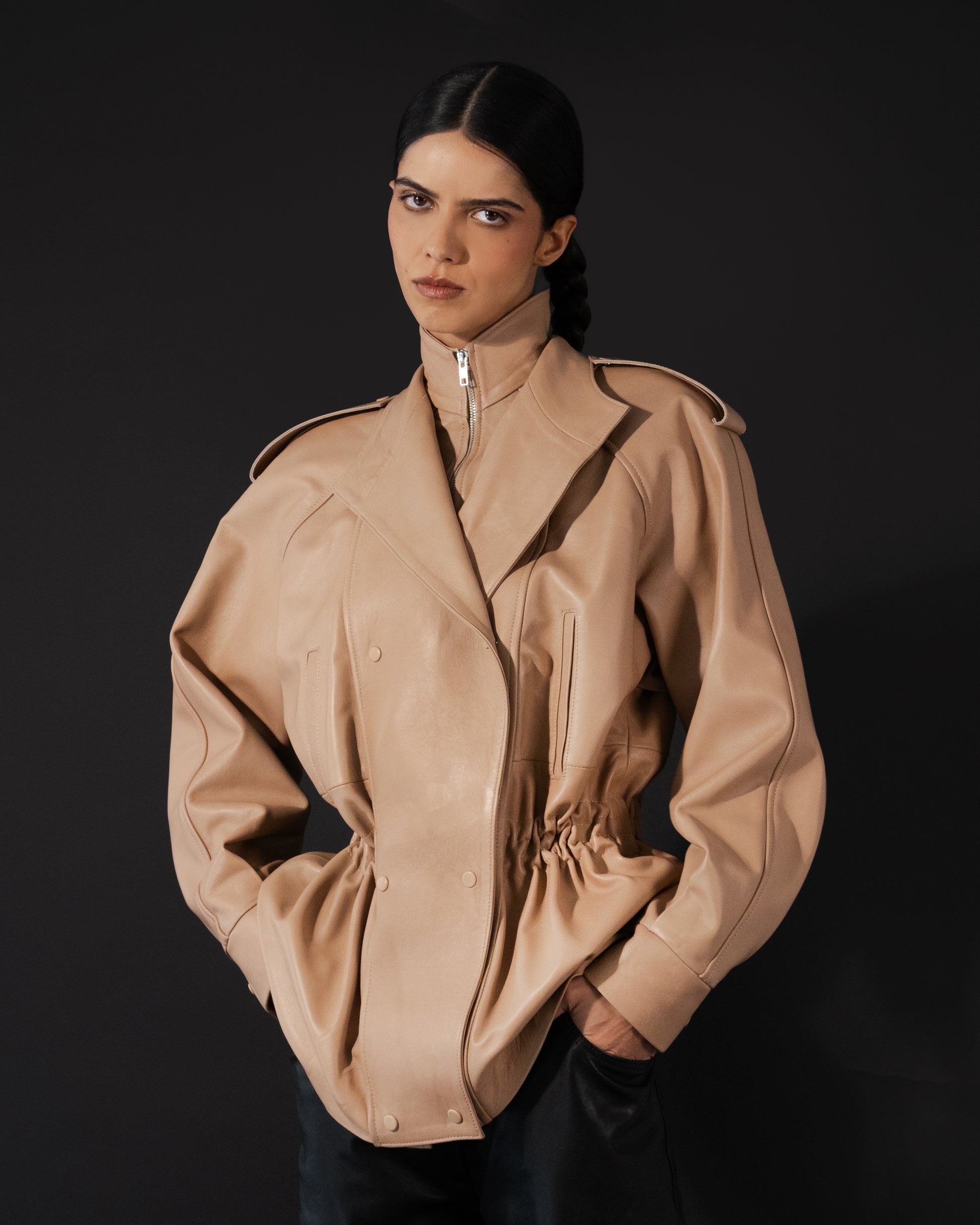 Gavin Leather Jacket Nude Beige