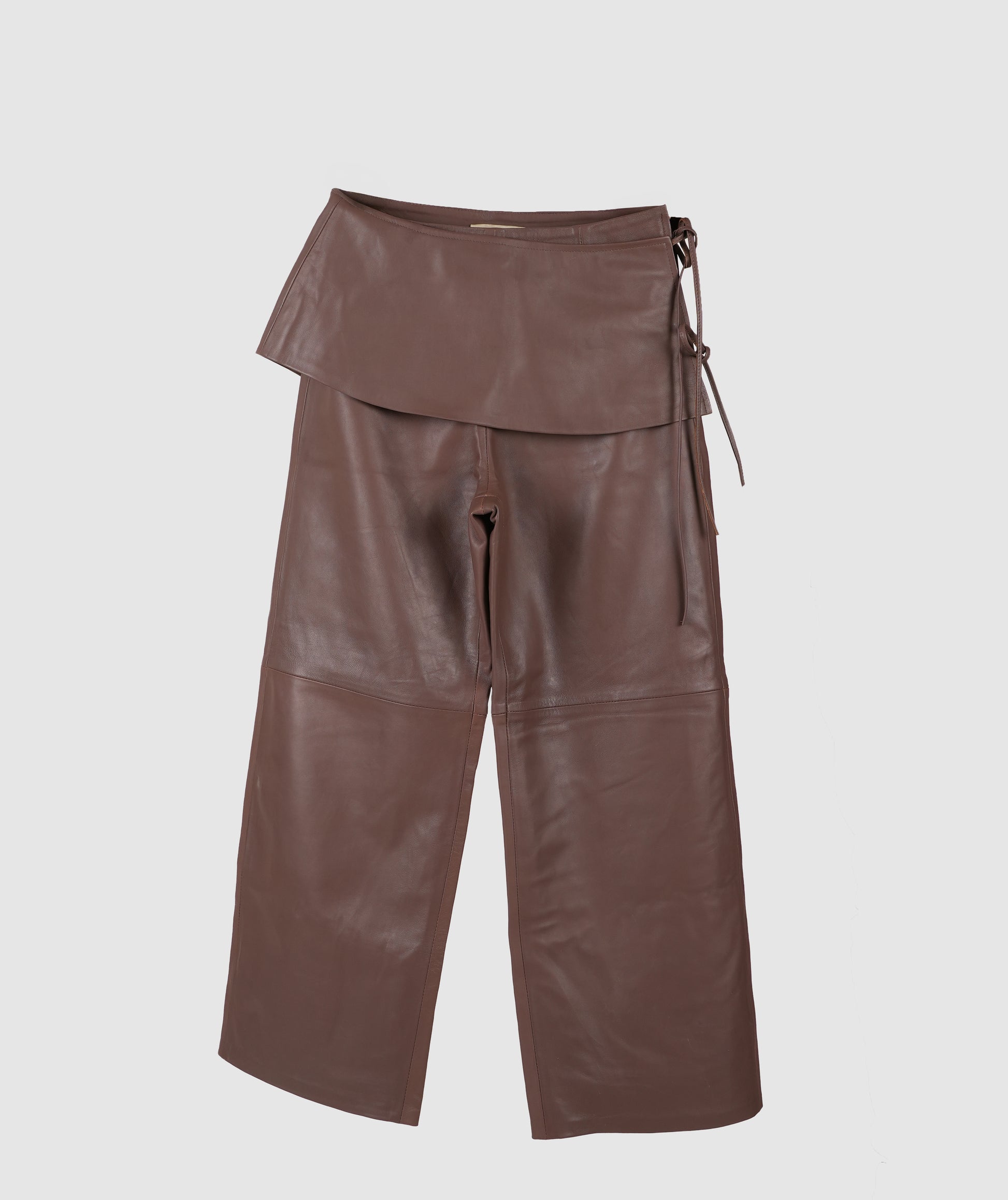 - Wide fit leather pants with removable skirt