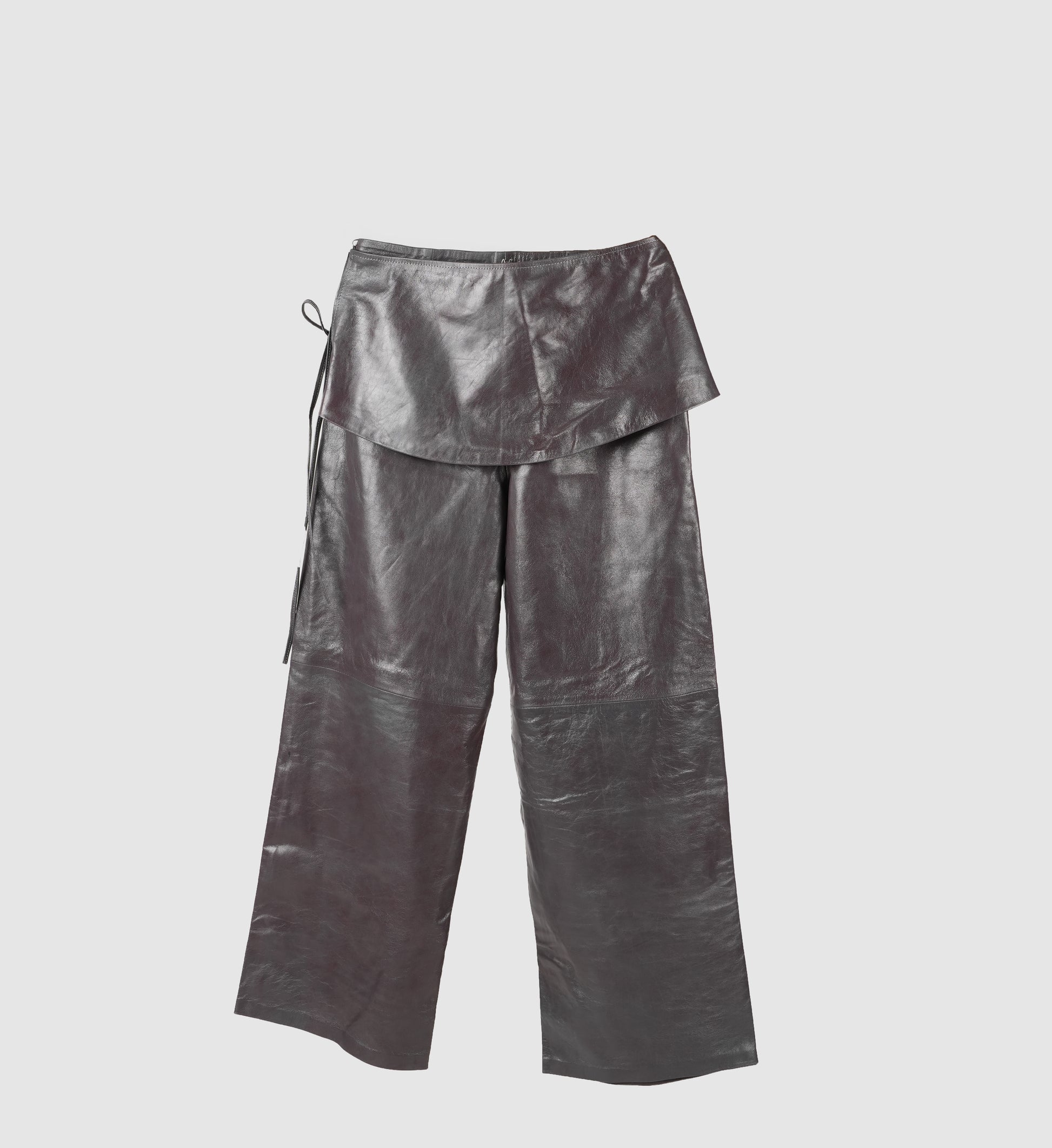 - Wide fit leather pants with removable skirt