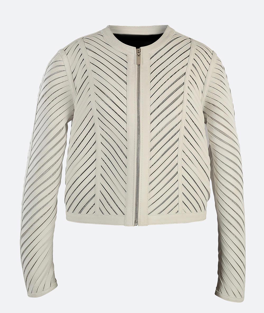 - striped leather cutout jacket