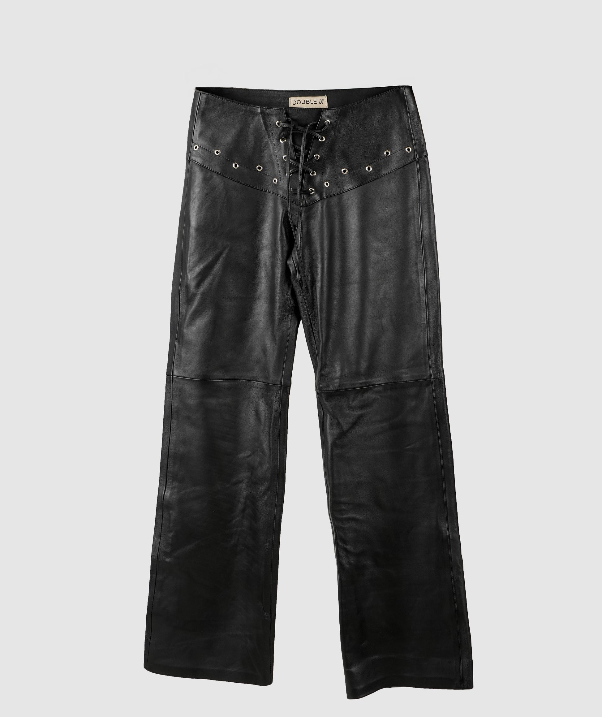 - A Regular fit, low waist leather pants with interlaced rope details at the front