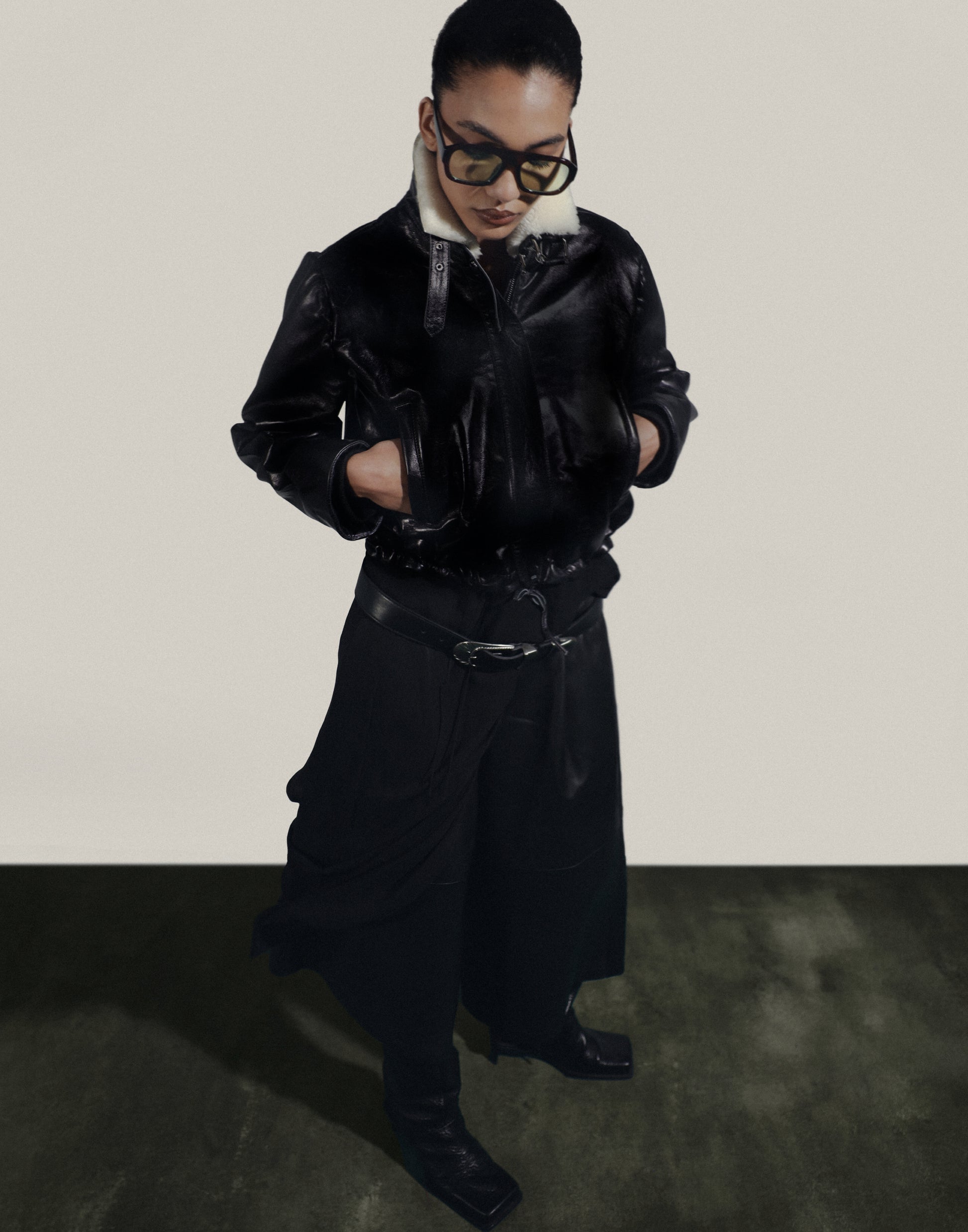 This leather balloon jacket is designed to keep you warm without sacrificing style, thanks to its insulated filling and bold, voluminous shape. The standout feature? A high, oversized shearling collar that can be buckled up for extra warmth β or removed entirely for a more streamlined look.