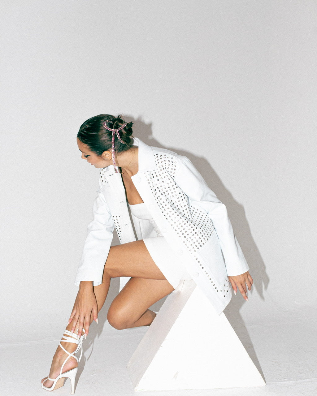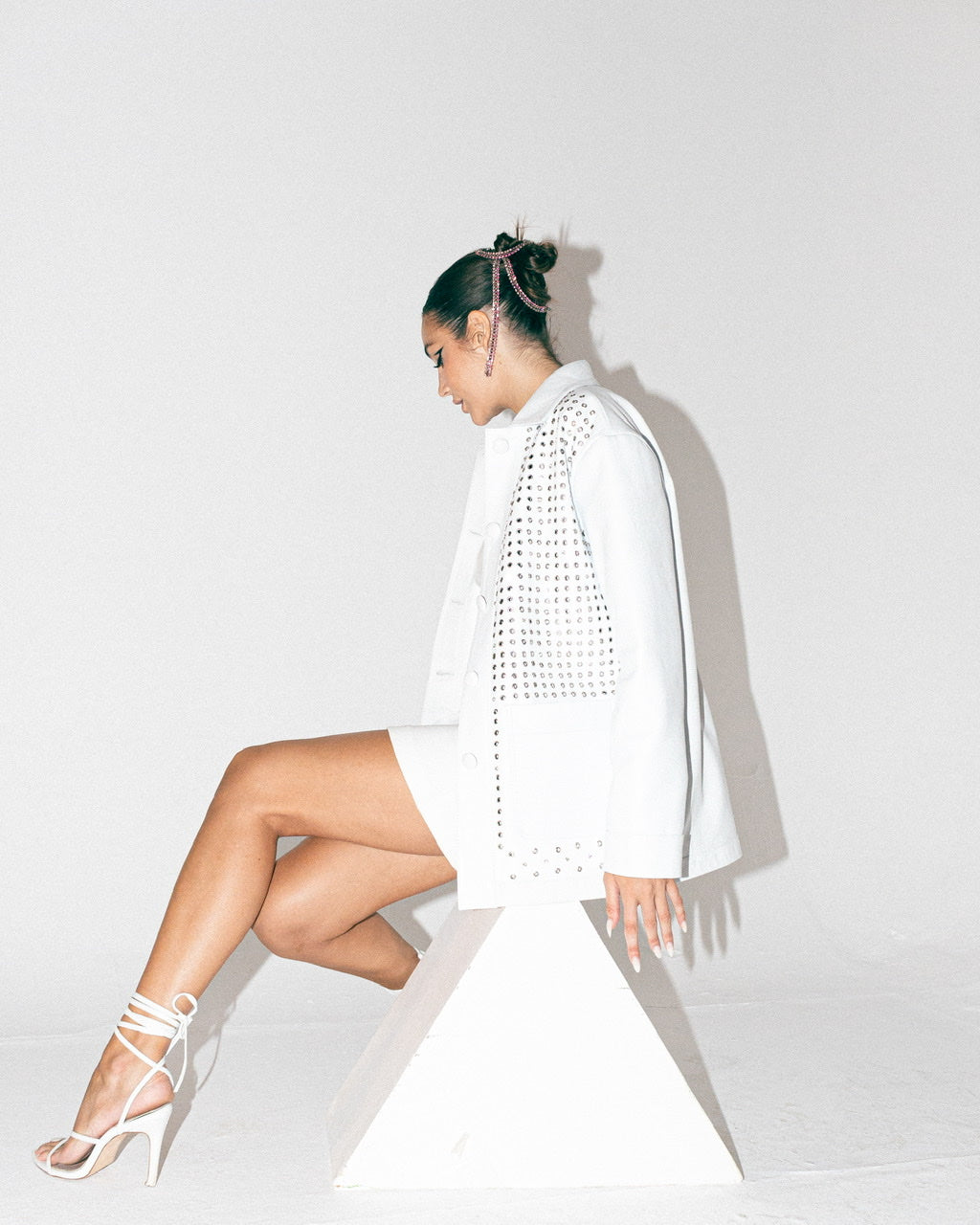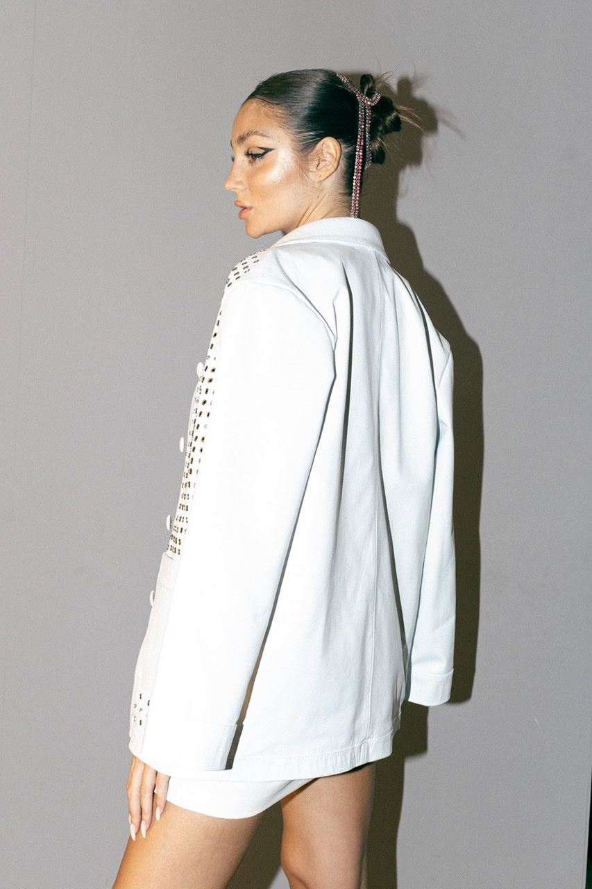 This piece will do all the talking! The Karri jacket is designed and stitched with the softest leather, it may take up to 12 hours to finish a piece. It features eyelets and diamond studs on the front to give you an extra bling. Style it on a plain sleek dress or a jeans and it will do the trick.