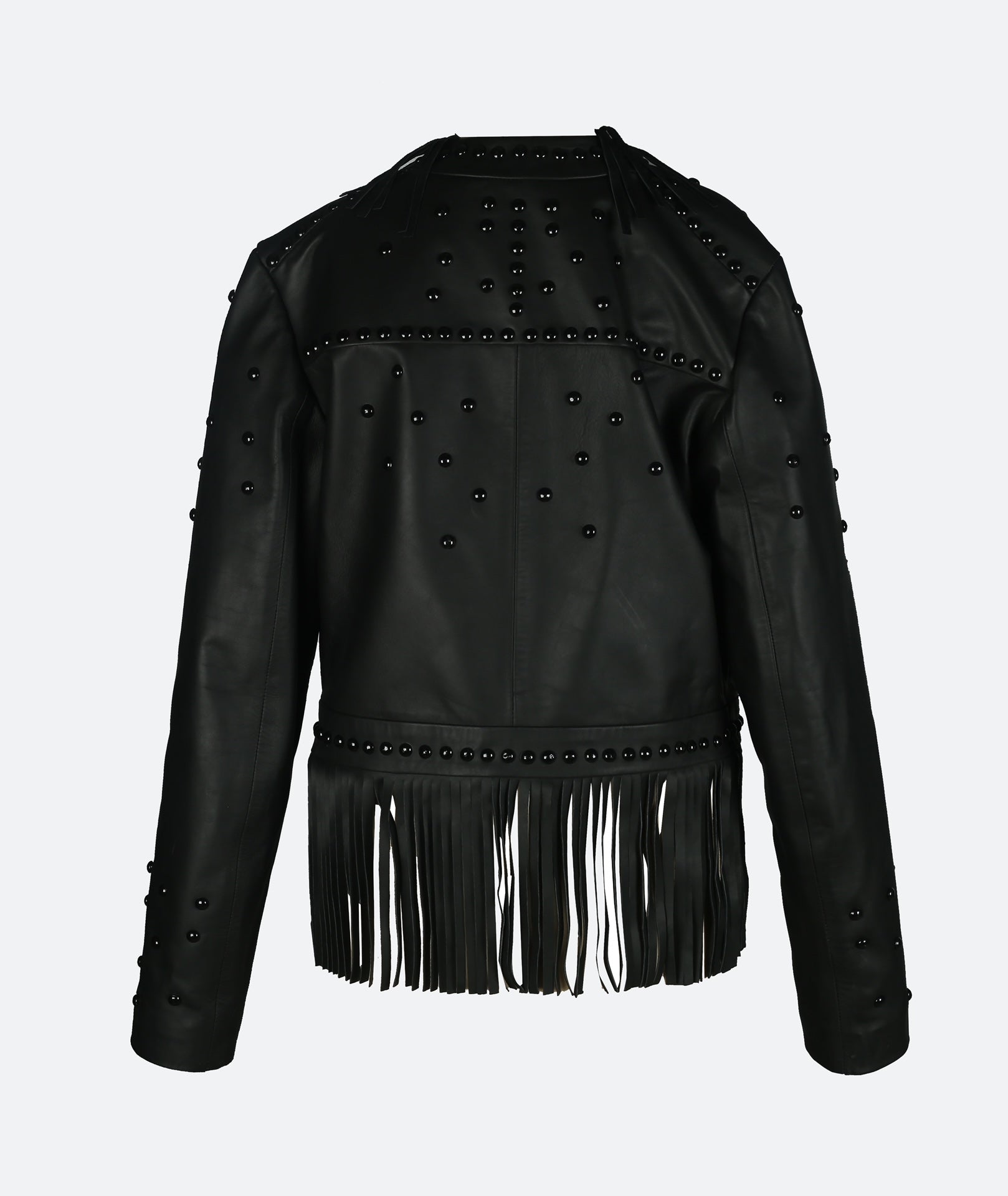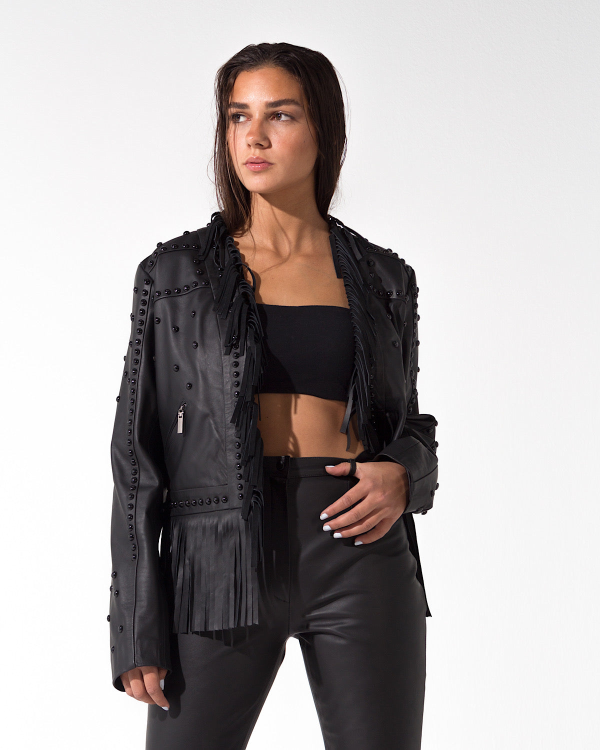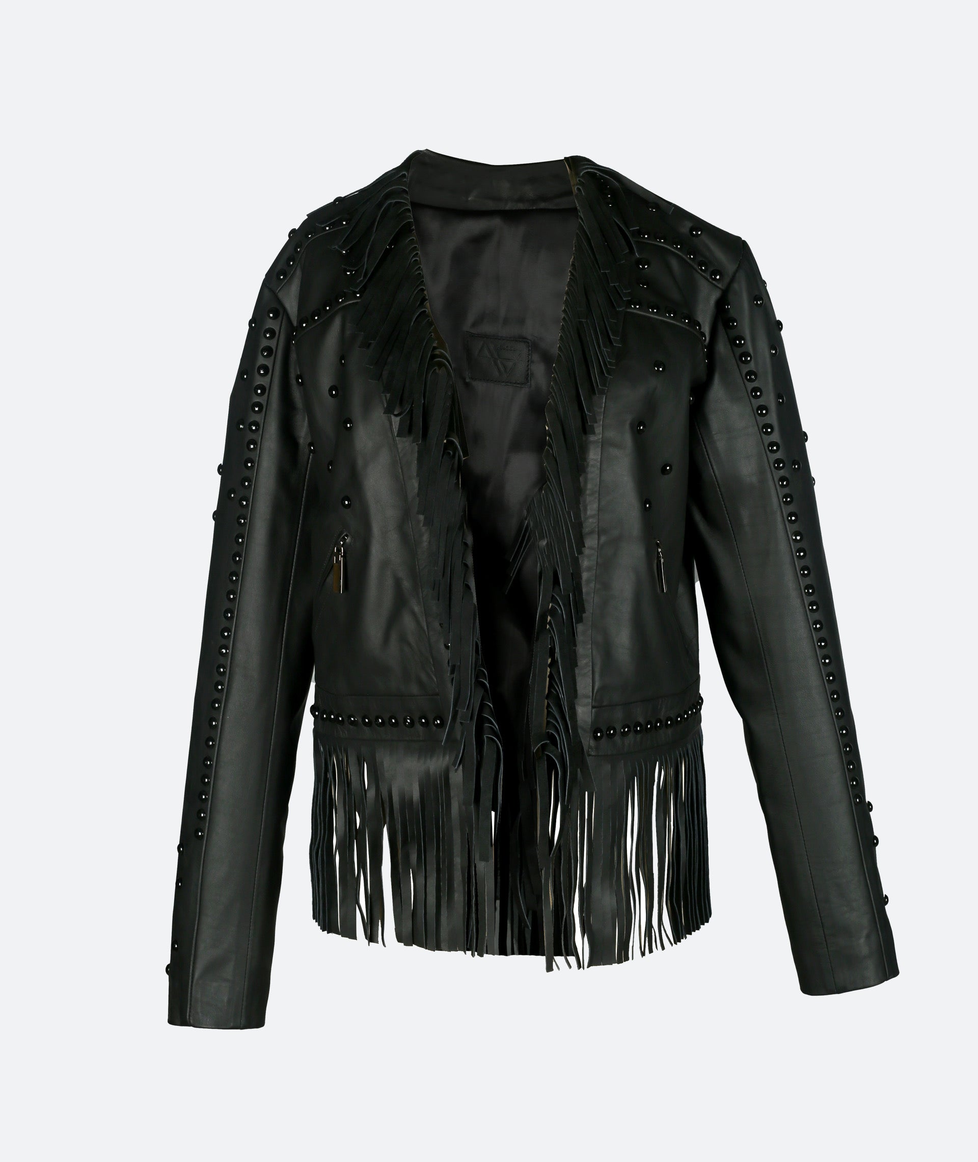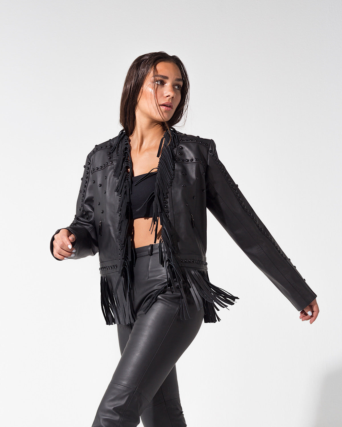 This jacket is definitely a must have! The lynx leather jacket features fringe details andΒ matching metal studs that would give a shiny effect yet will not limit you when you get to style it.