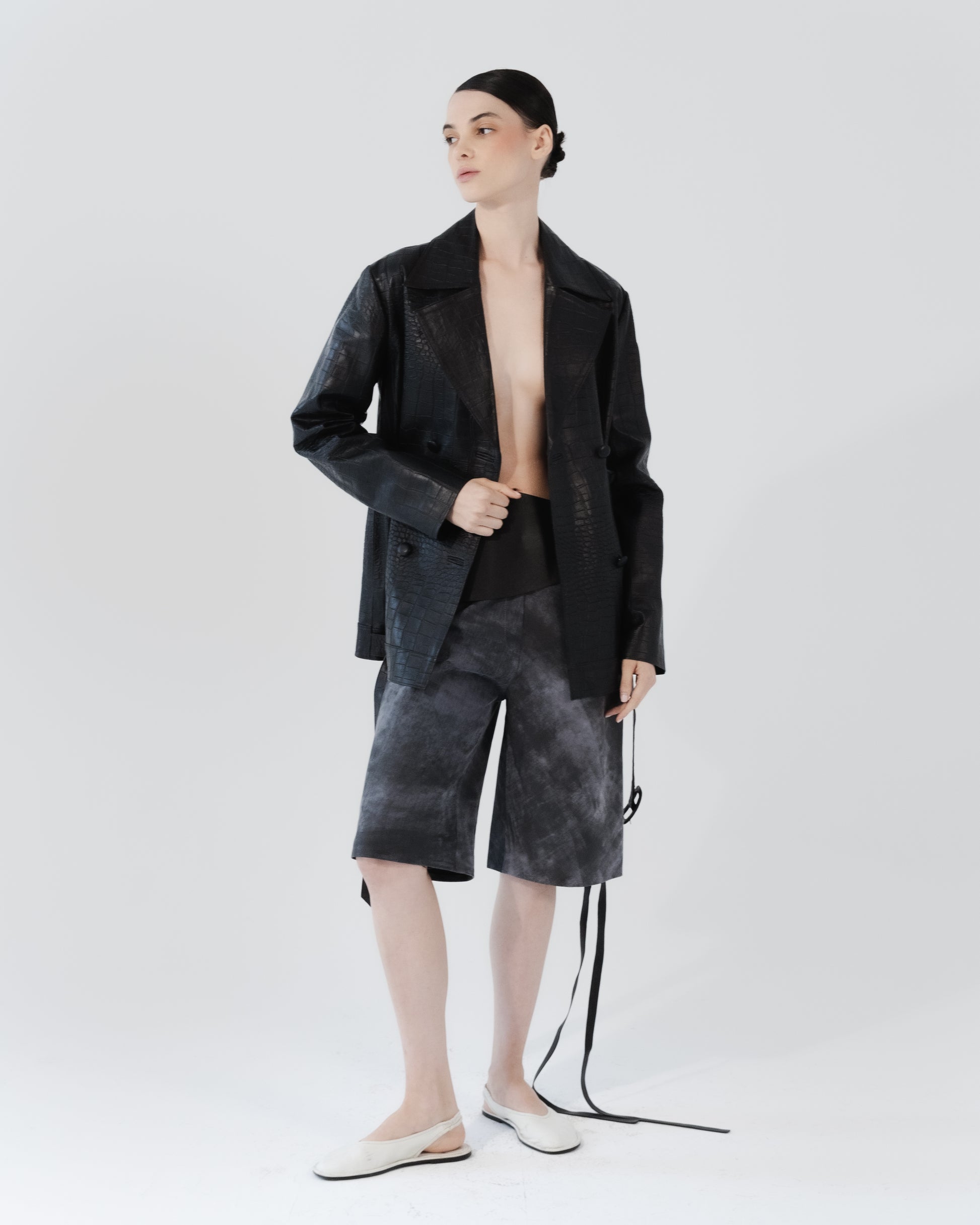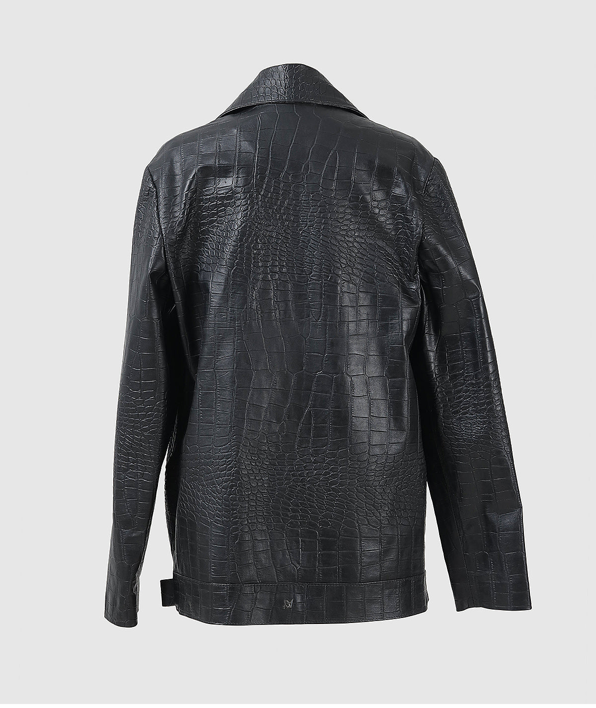 Make a statement with our oversized leather jacket, designed for bold, contemporary style. Featuring an embossed croc texture, this jacket brings an elevated edge to classic leather.Β Front matching covered button fastening adds a refined touch, blending seamlessly with the luxurious embossed leather. Perfect for those who embrace modern sophistication with a daring twist.