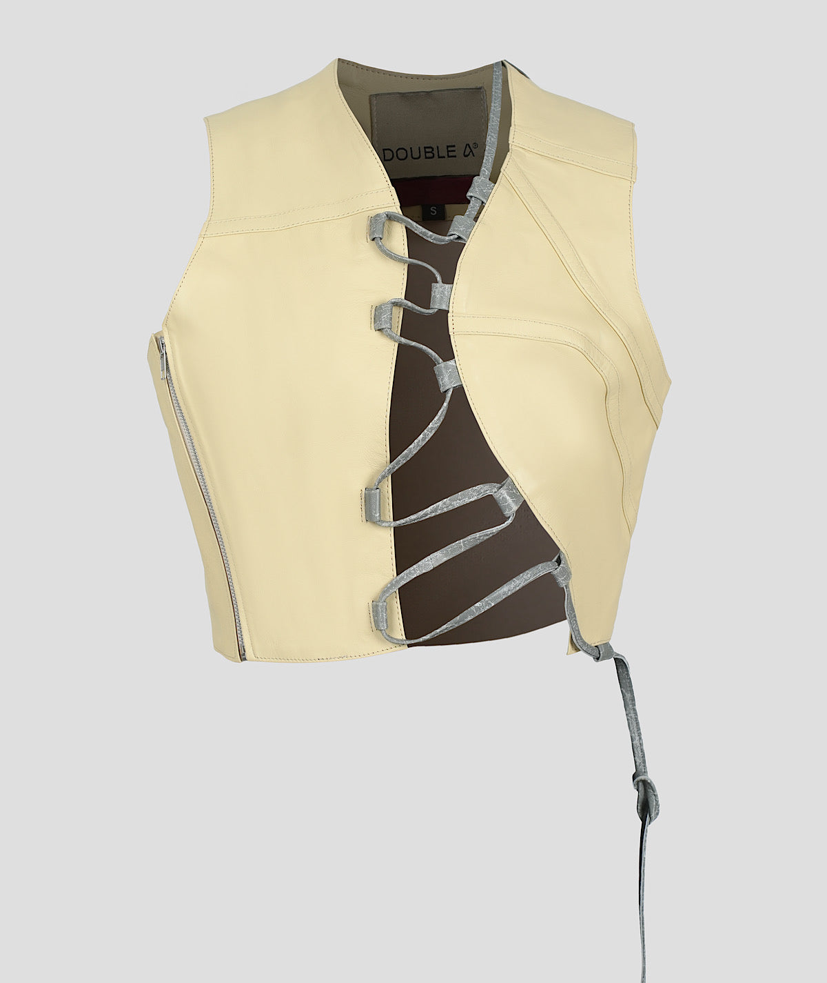 The Mason is a bold leather vest designed with asymmetrical front sides, creating a striking and unconventional silhouette. Its standout feature is the interlaced leather rope detailing, perfectly matched in color for a seamless yet statement-making look. A sleek side zipper closure ensures the intricate rope design remains uninterrupted while offering both structure and ease of wear. This piece is the ultimate blend of edgy craftsmanship and modern styling, making it a must-have for a daring, fashion-forward wardrobe.