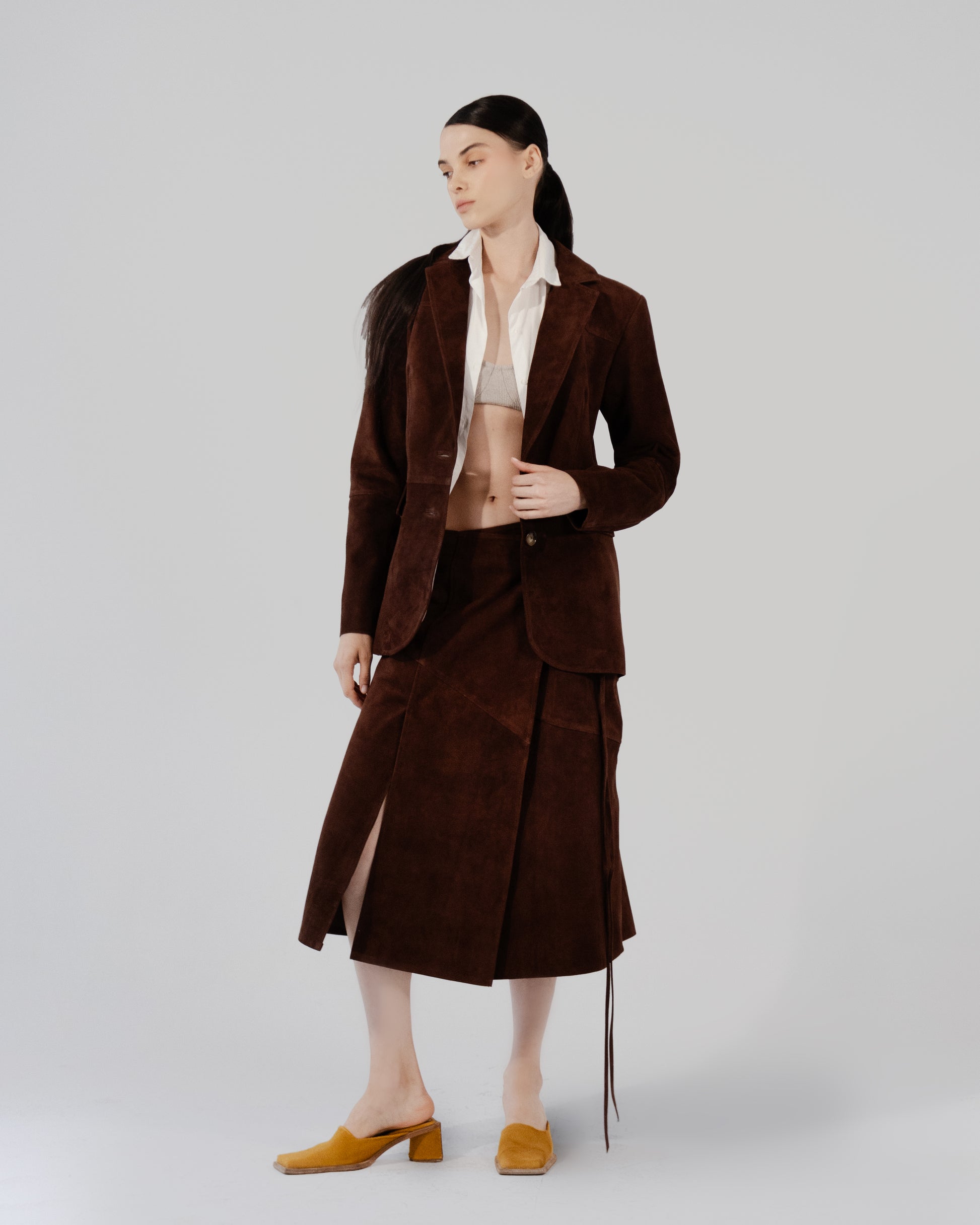 Inspired by the Polaris blazer from previous collections, the Polaris II blazer is a single breasted leather blazer with a lapel collar, an oversized fit and bold shoulders. Featuring pockets with flaps and button fastening at the front. It is surely a wardrobe essential that can be styled on different occasions.
