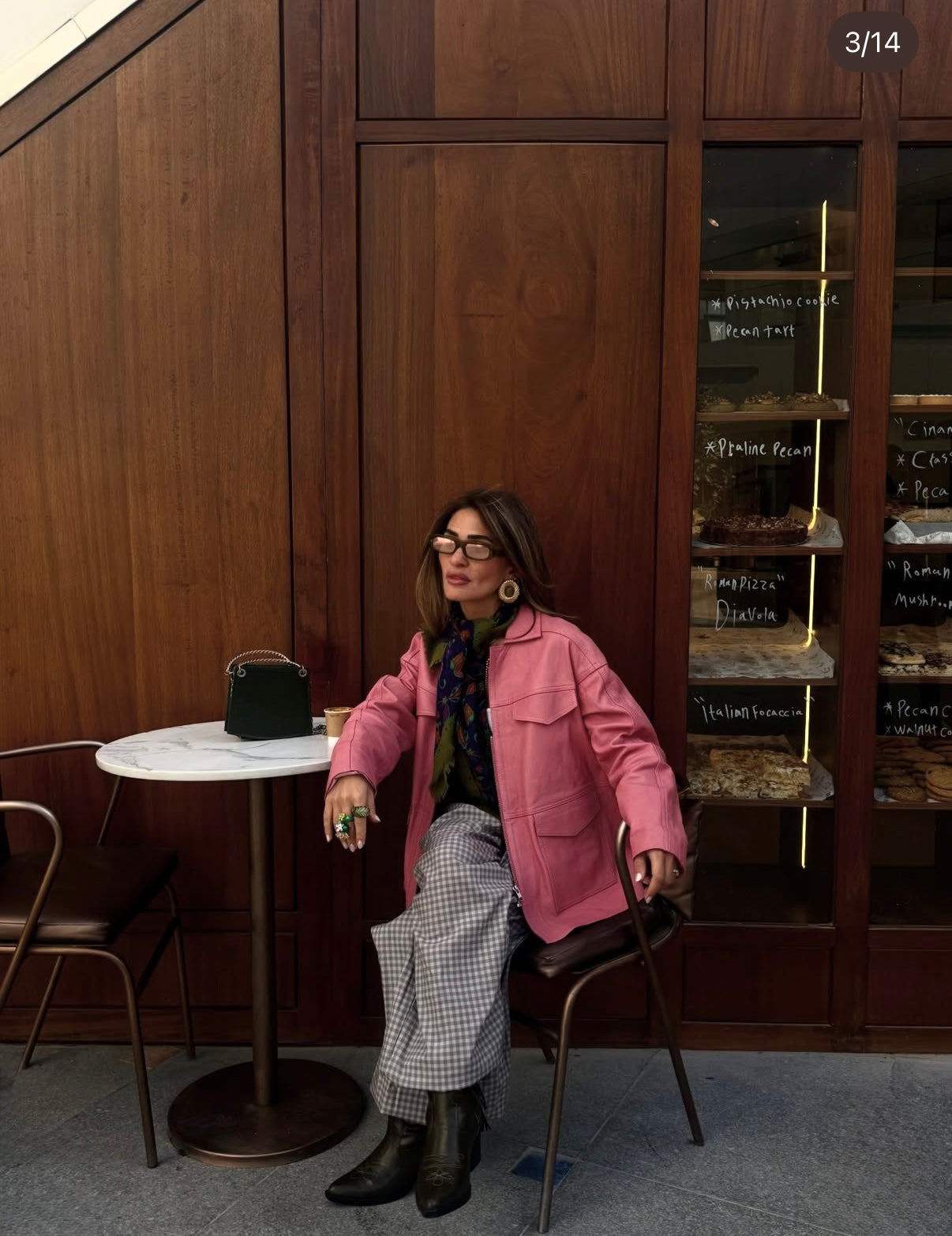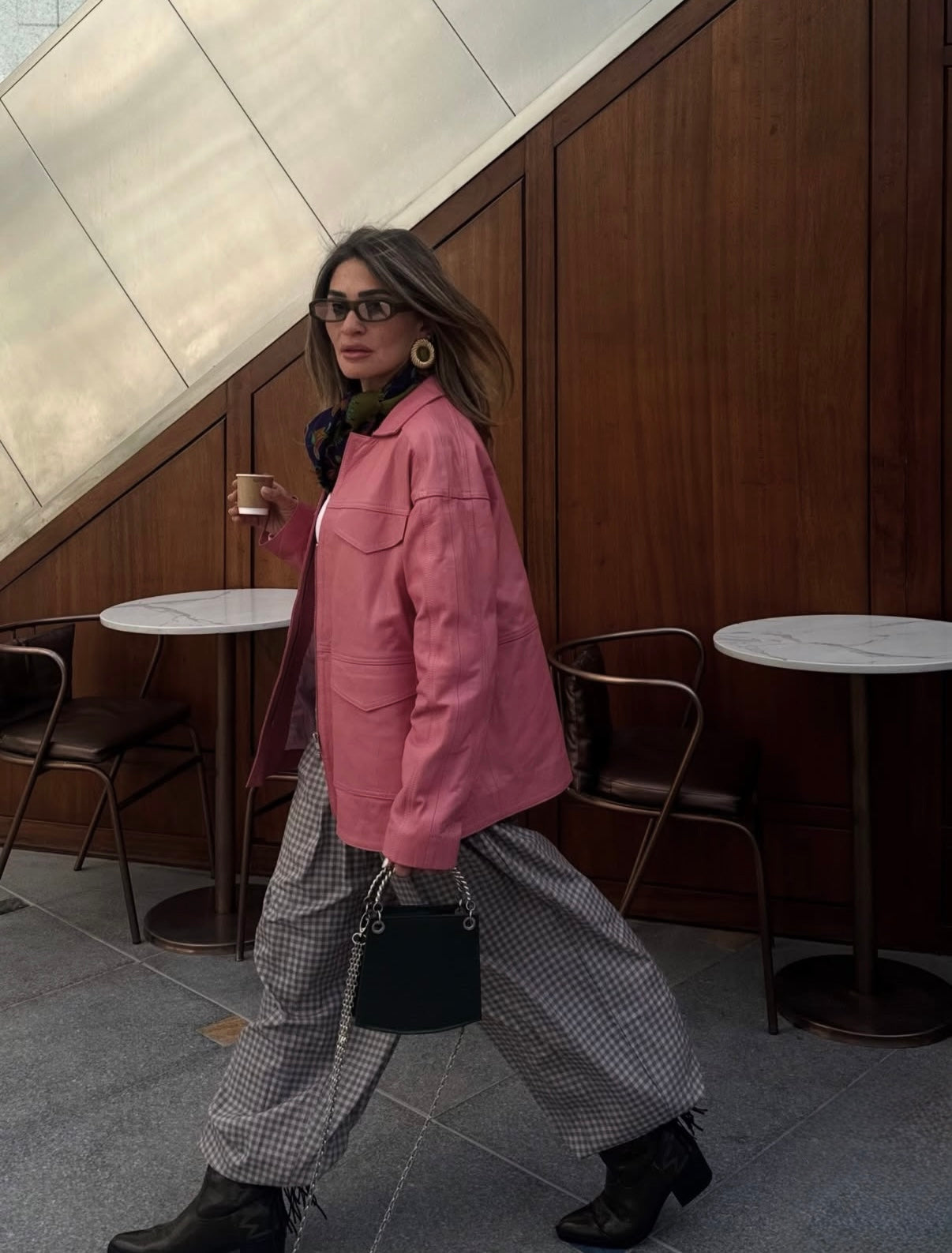 - over sized leather Jacket with wide and deep pockets.