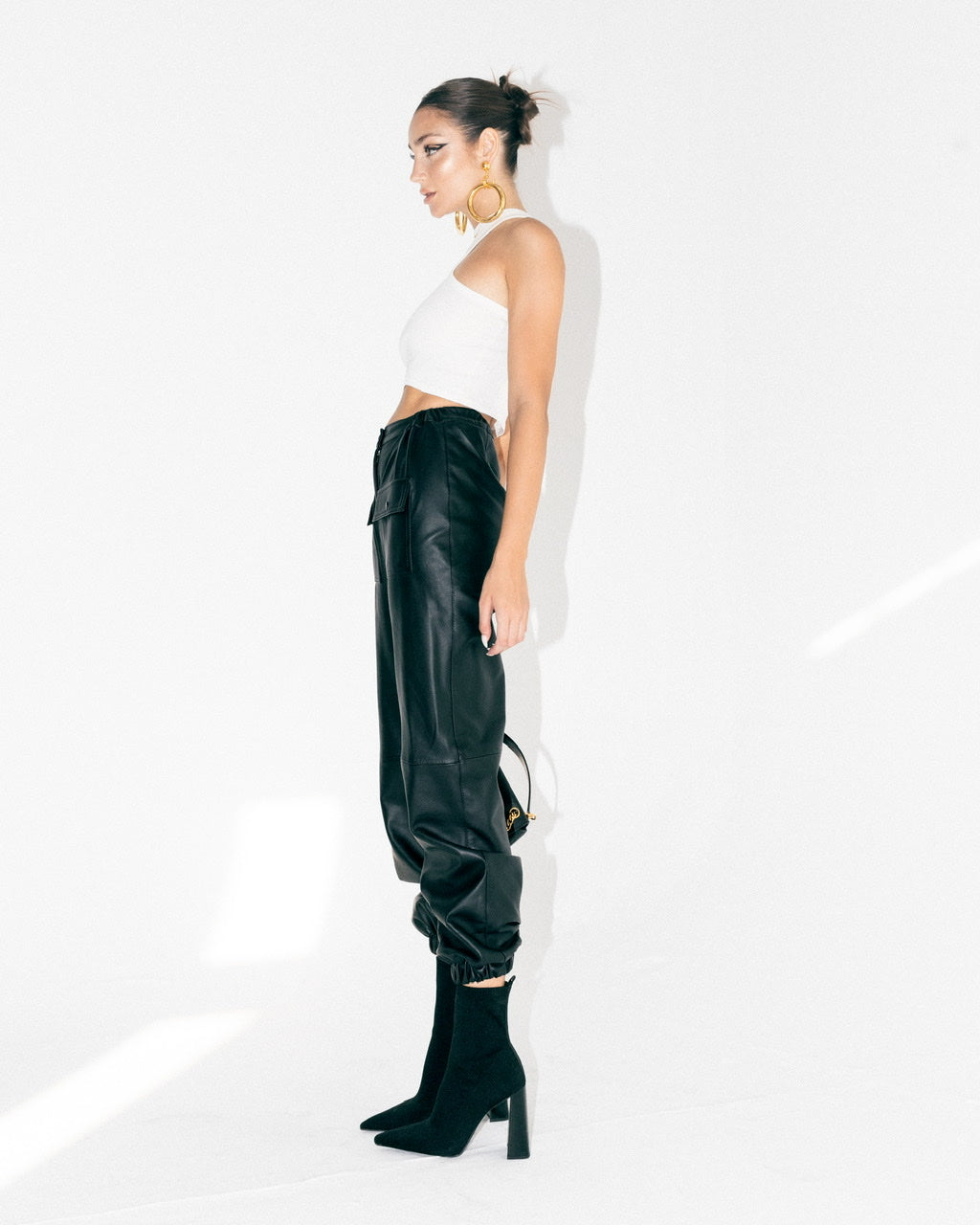 - Leather cargo joggers
