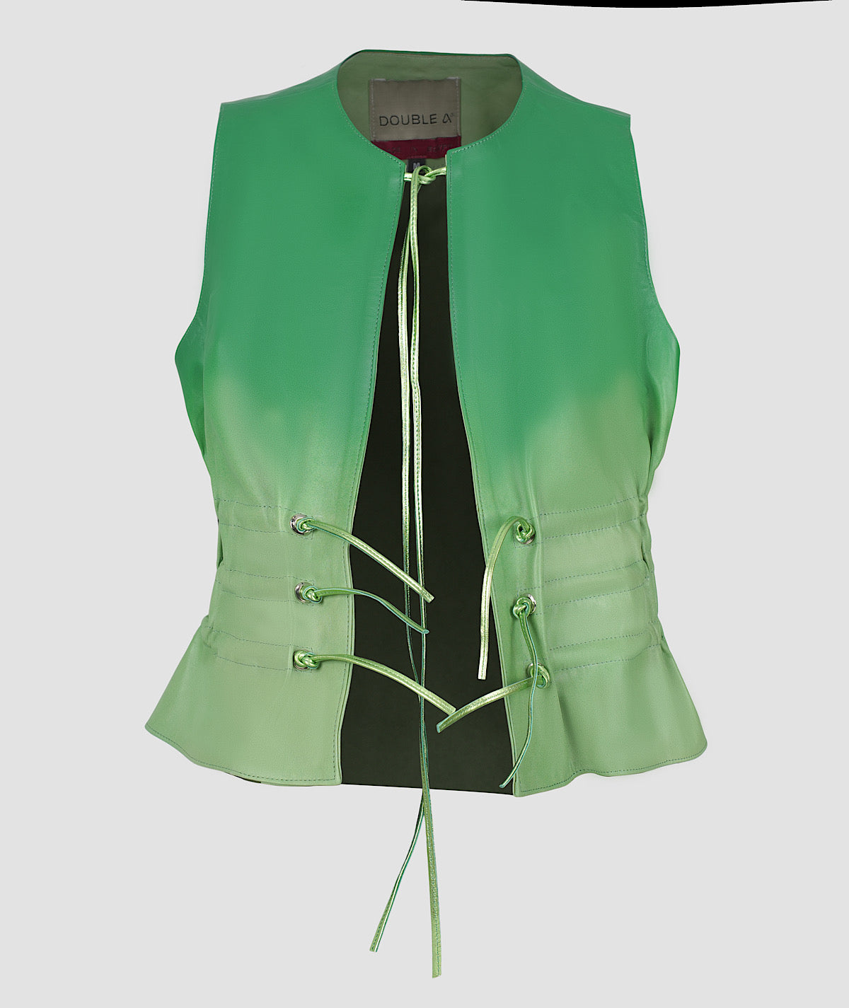 The Tyler is a bold leather vest designed for a striking silhouette. Featuring three adjustable ropes at the waist, it allows for a cinched, structured fit while maintaining an effortless edge. Additional ropes at the neckline add a unique, cool detail and can also be used as a closure for versatile styling. A statement piece that blends contemporary design with functionality, this vest is perfect for layering over sleek basics or pairing with matching leather pieces for an elevated look.