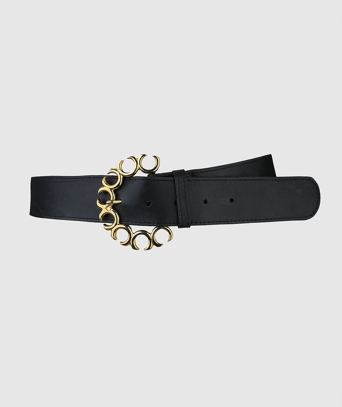 - Features uniquely shaped gold buckle