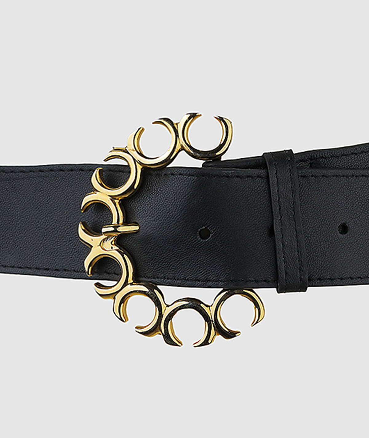 Elevate your accessories collection with our luxurious leather belt, featuring a uniquely shaped gold buckle for a touch of elegance and modern flair. Crafted from premium leather, this belt offers a sleek and sophisticated design, perfect for enhancing both casual and formal looks. The eye-catching gold buckle adds a statement finish, making this belt a must-have for anyone seeking to add a hint of glamour to their outfit.
