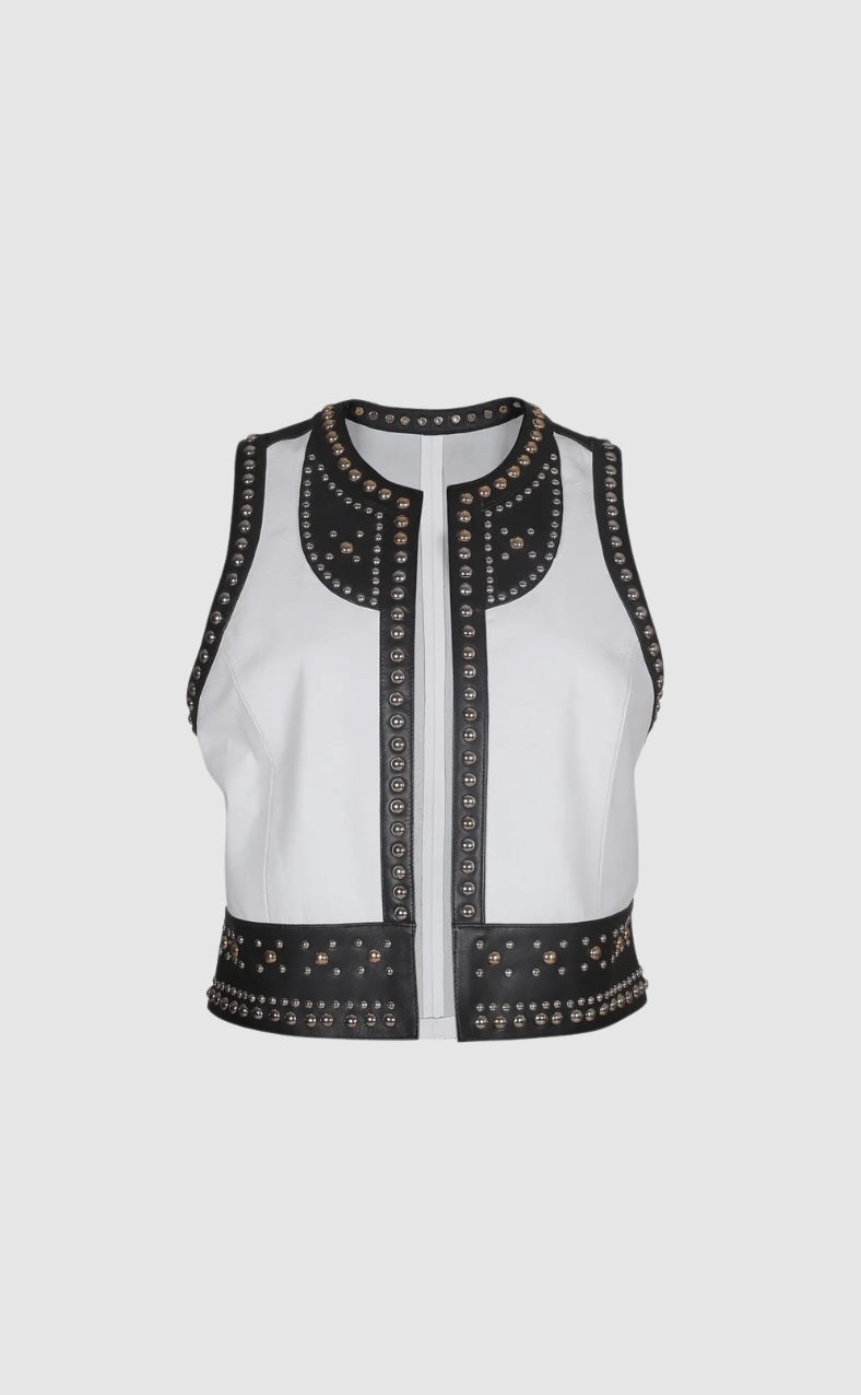 - Tonal studded leather vest